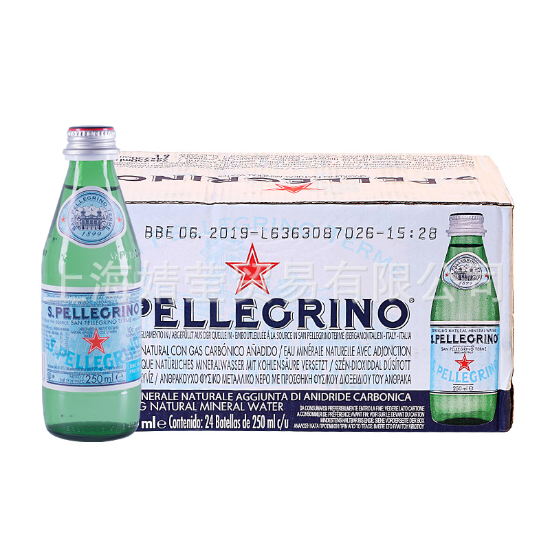イタリア原装輸入水小ガラス瓶聖培露空気入り天然ミネラルウォーター250ml * 24本気泡水