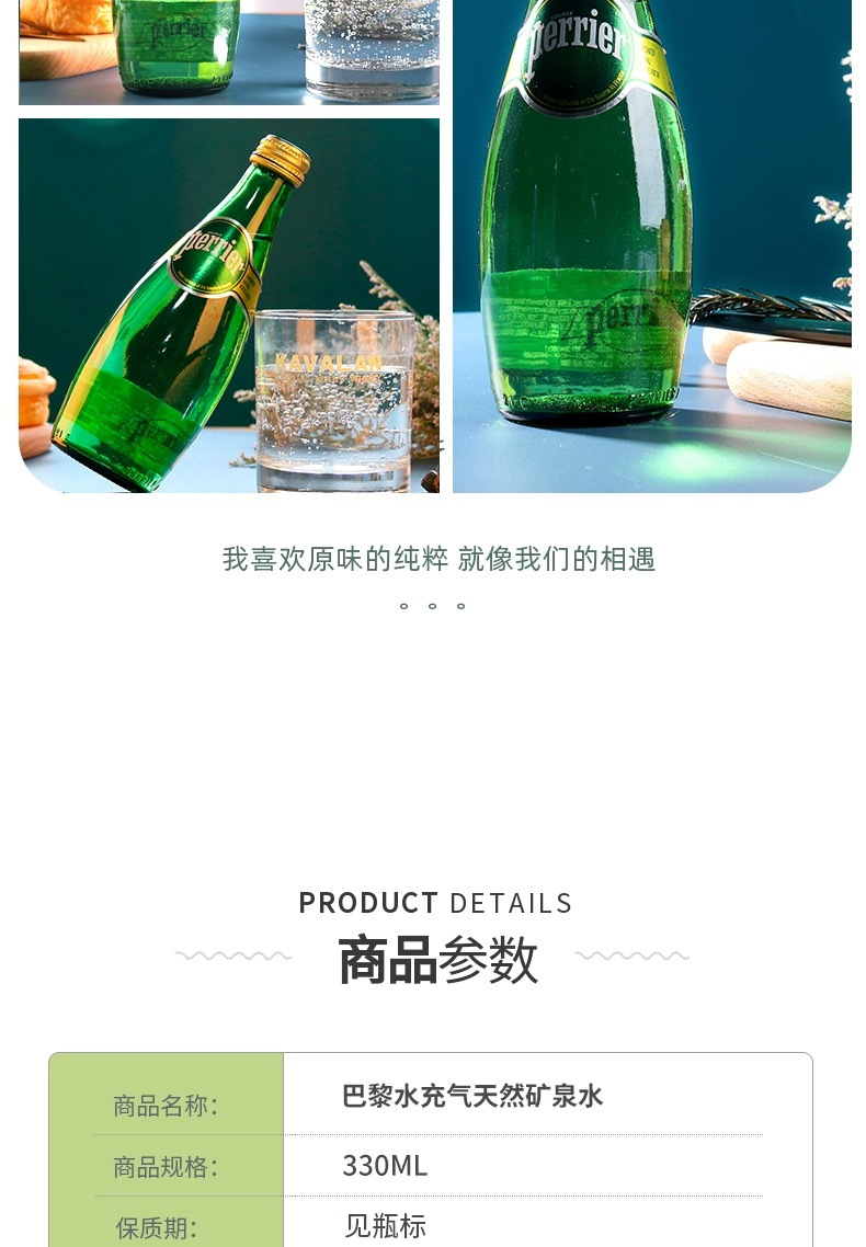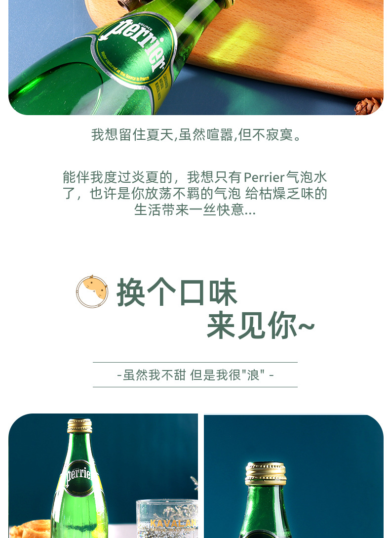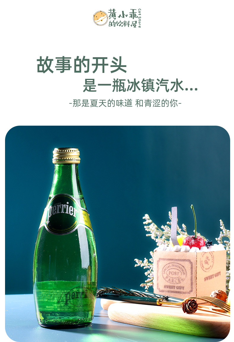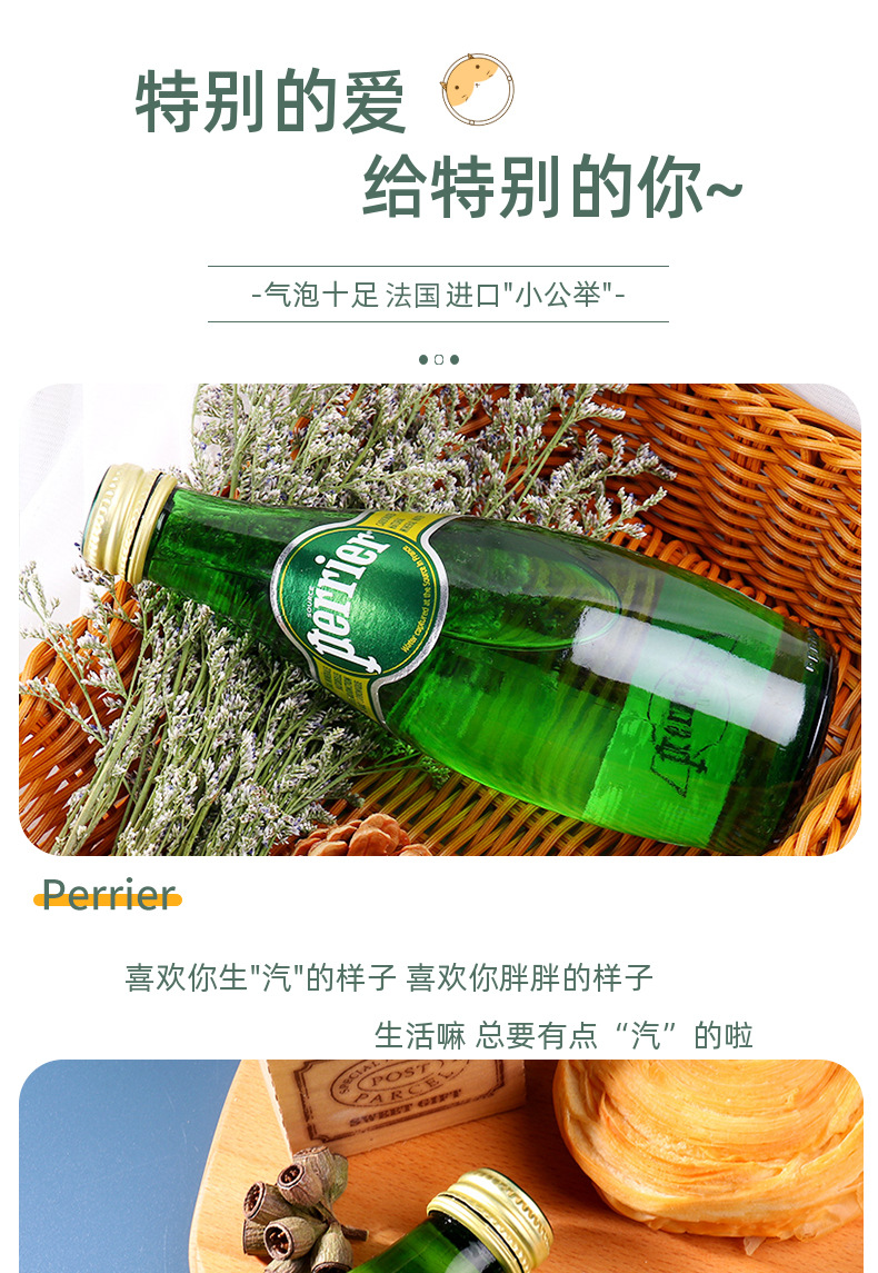 Perrier法进口巴黎水原味青柠檬气泡水330玻璃瓶天然矿泉水可乐