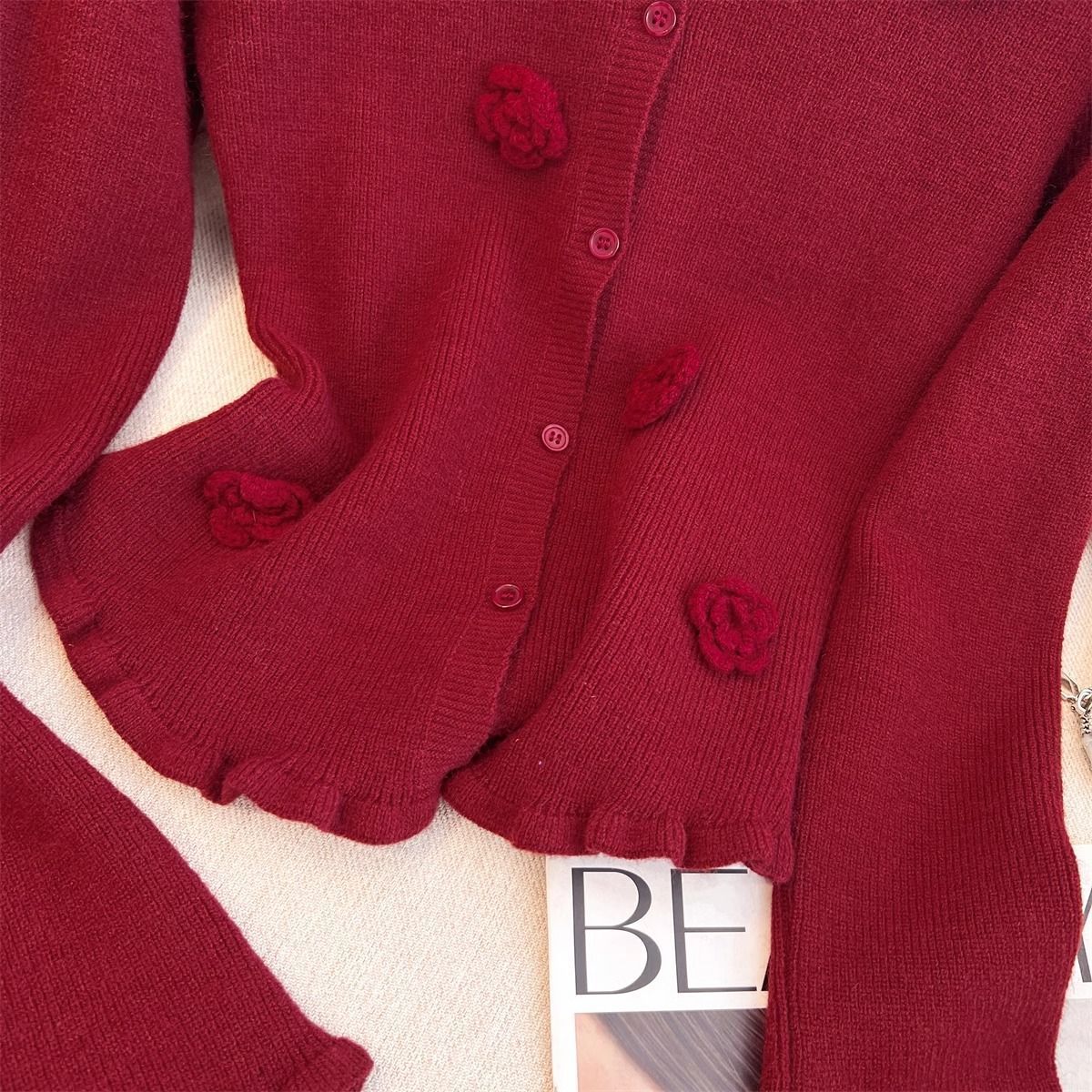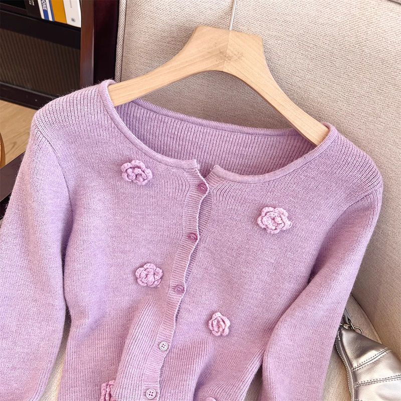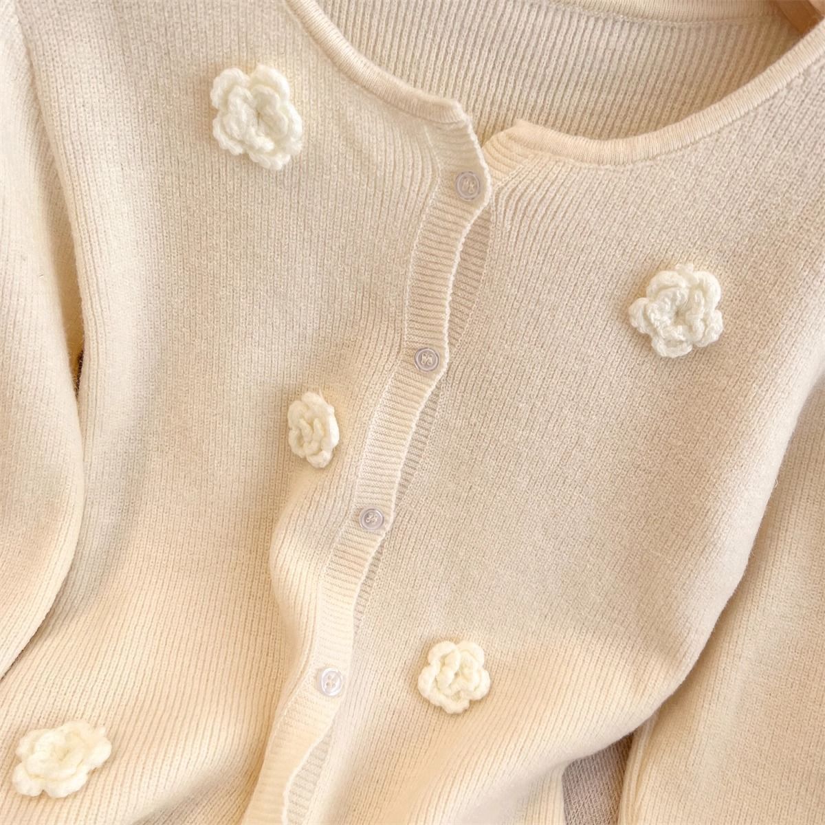 2025秋冬の新型の優しい手作りの花の波の辺の保温のセーターの女性の高級感の独特な心の上着