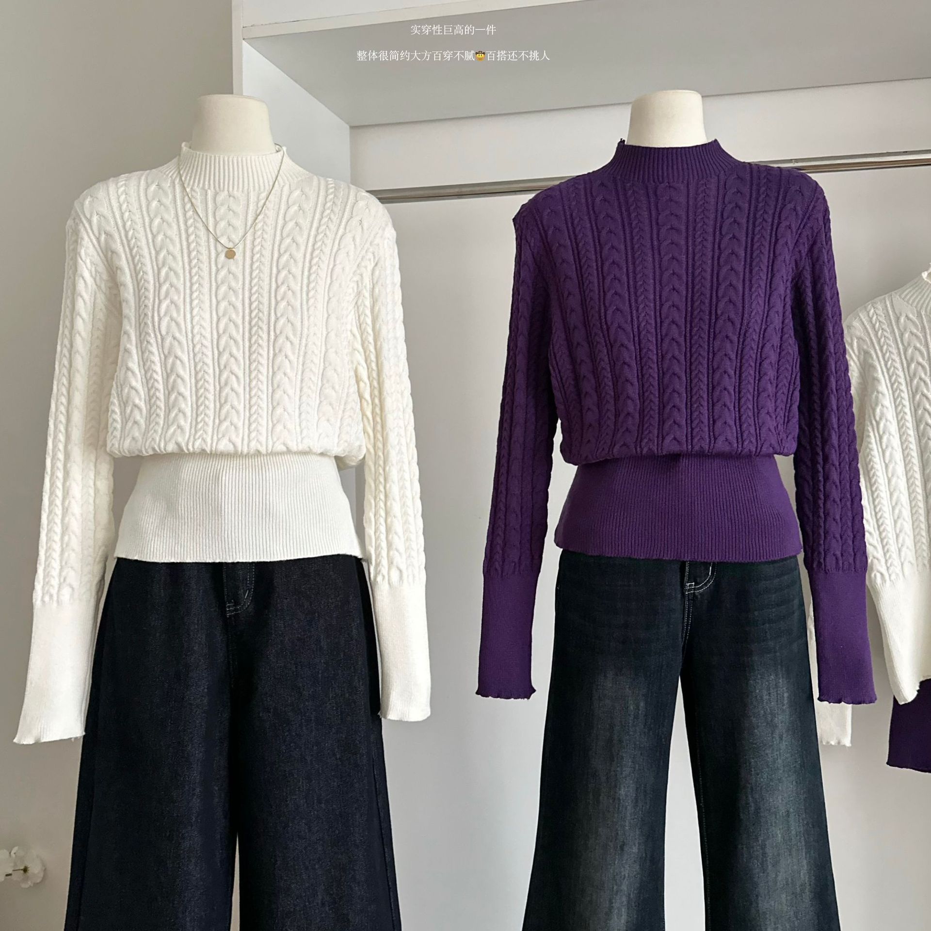 复古港风圆领麻花长袖针织衫秋冬季新款美拉德甜辣妹收腰显瘦毛衣