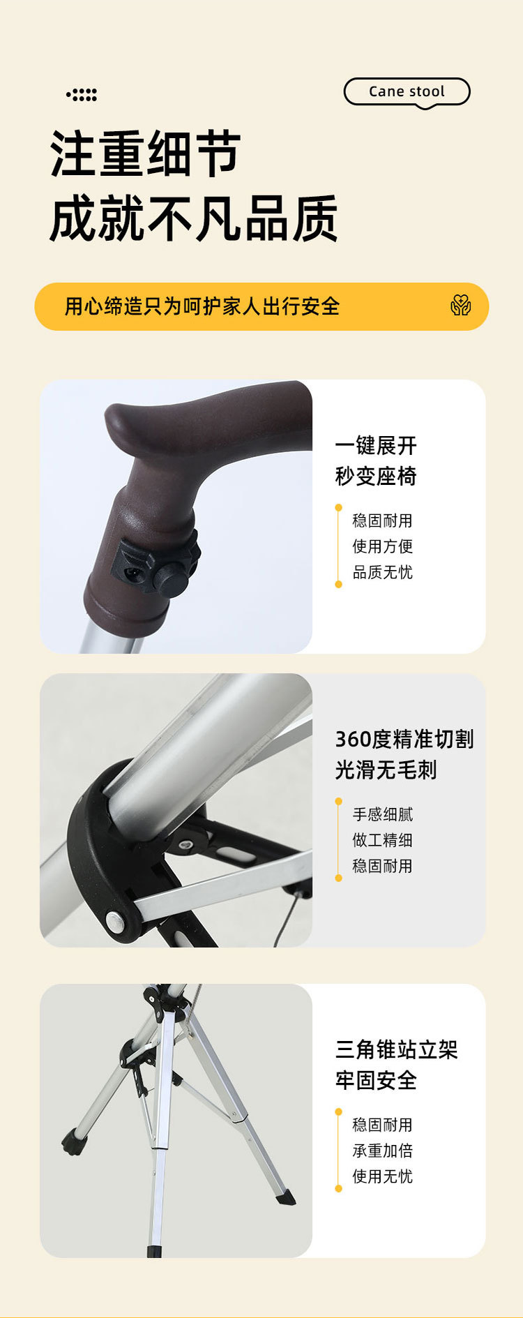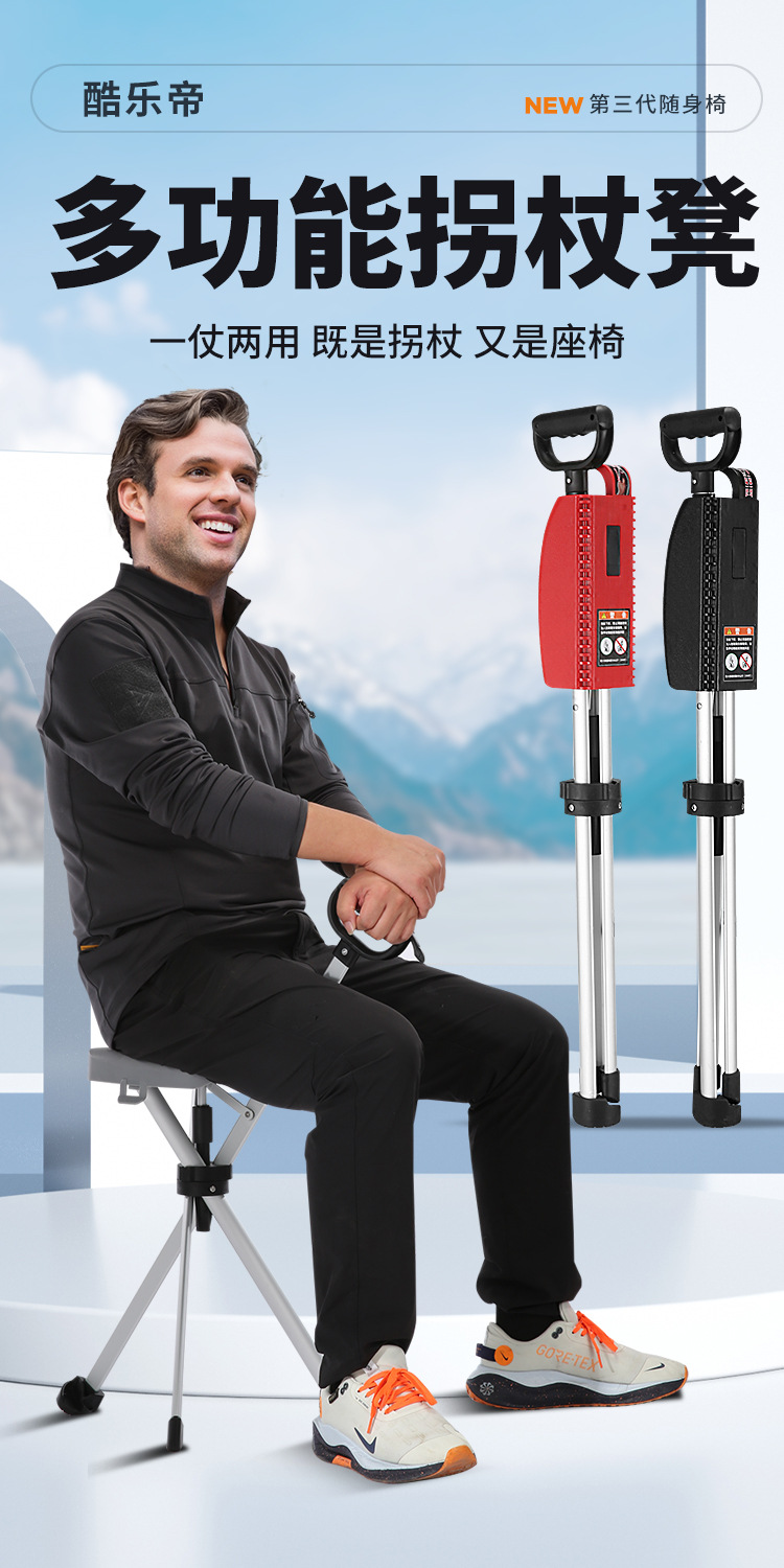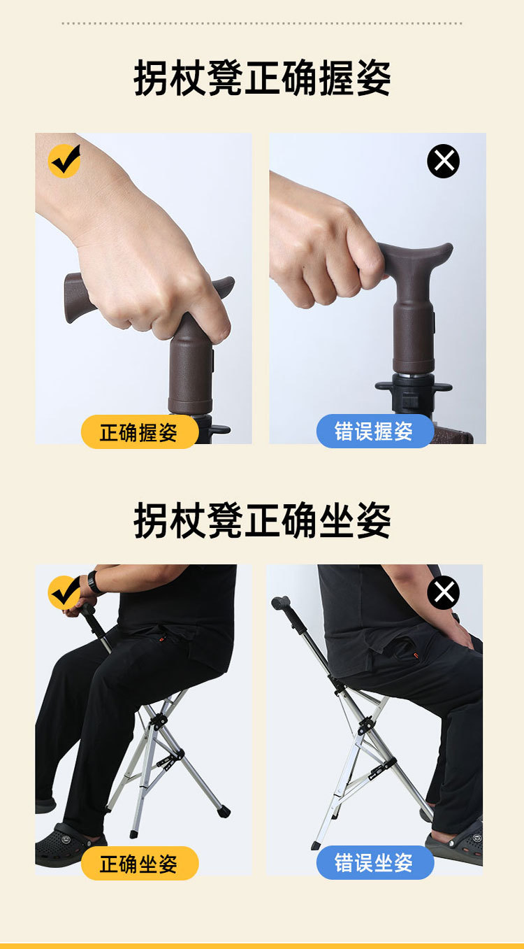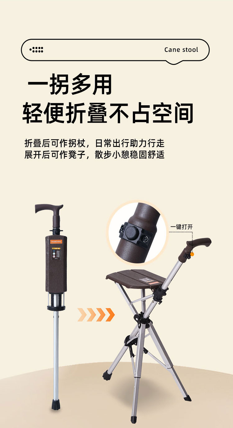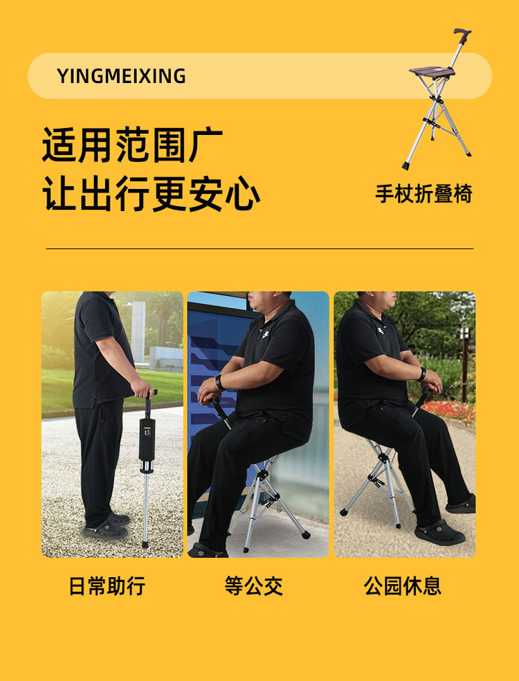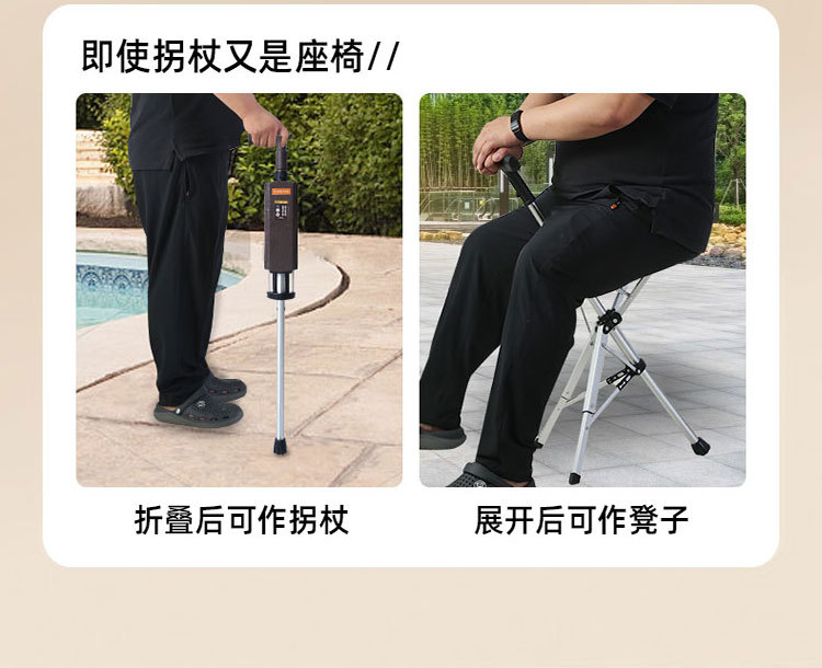 电动款拐杖凳一键开合手杖椅户外随身椅折叠拐棍登山杖防滑多功能