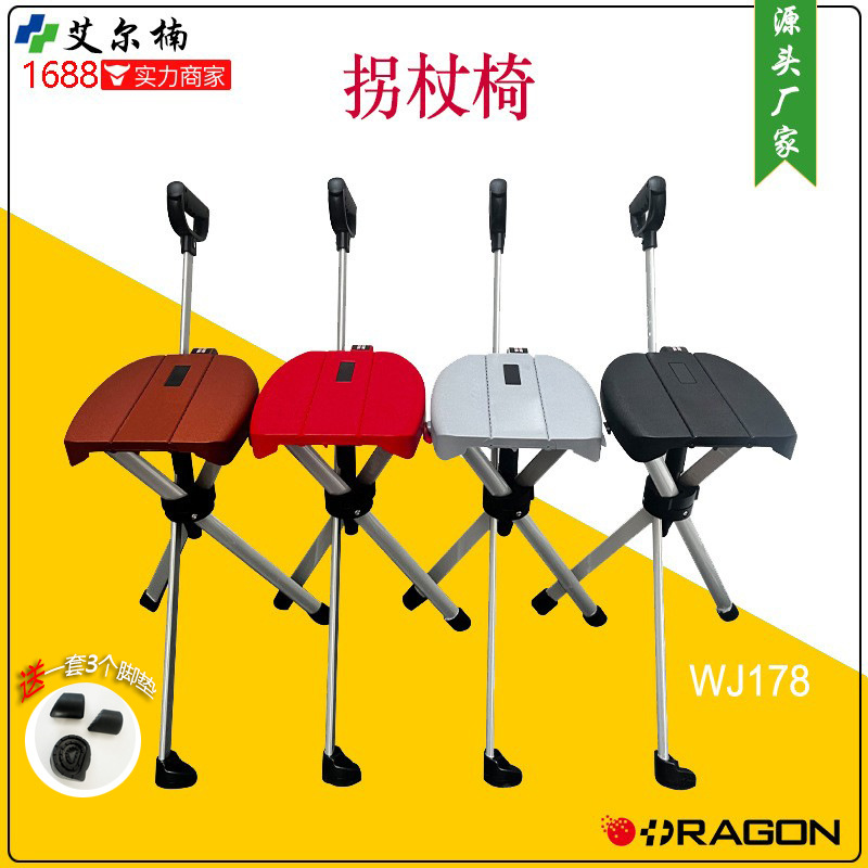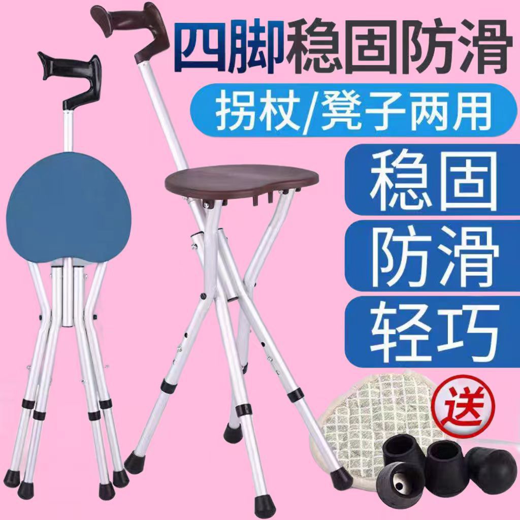 越境高齢者松葉杖椅子折りたたみ松葉杖スツール軽量滑り止め高齢者歩行補助折りたたみ杖スツール付き