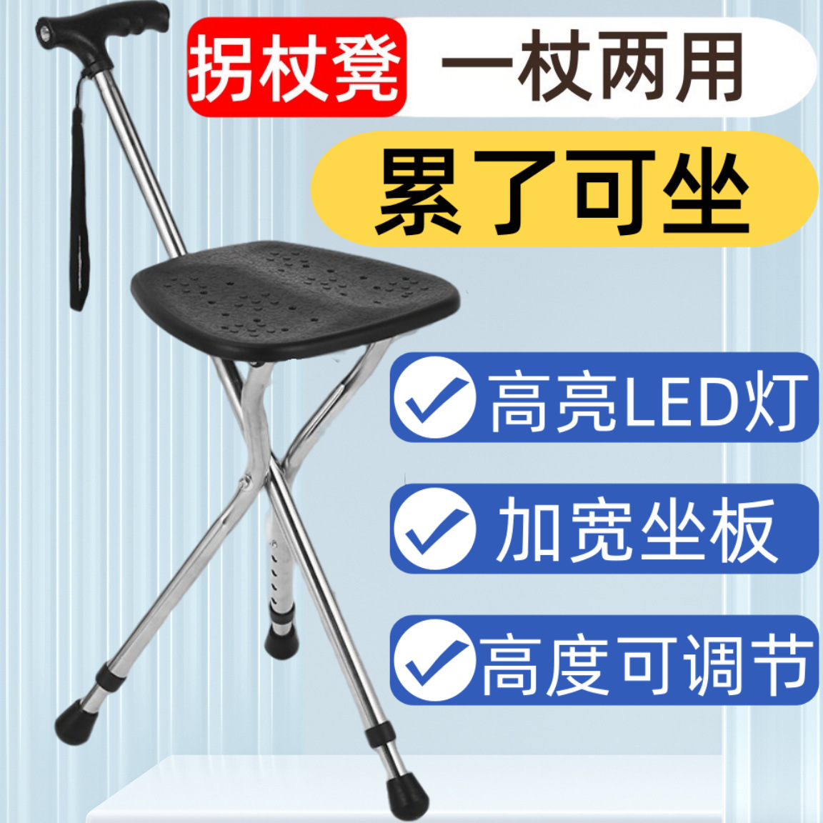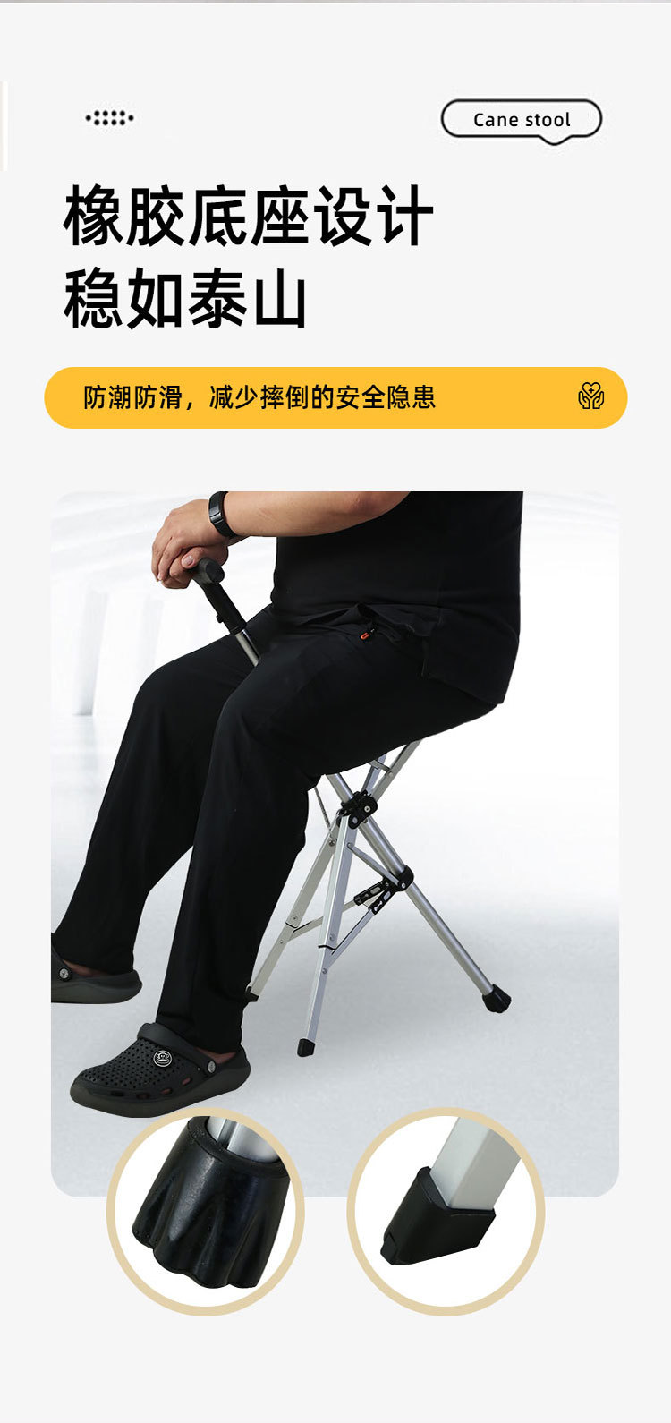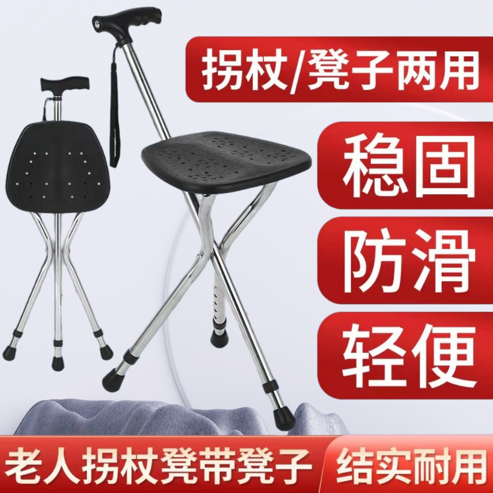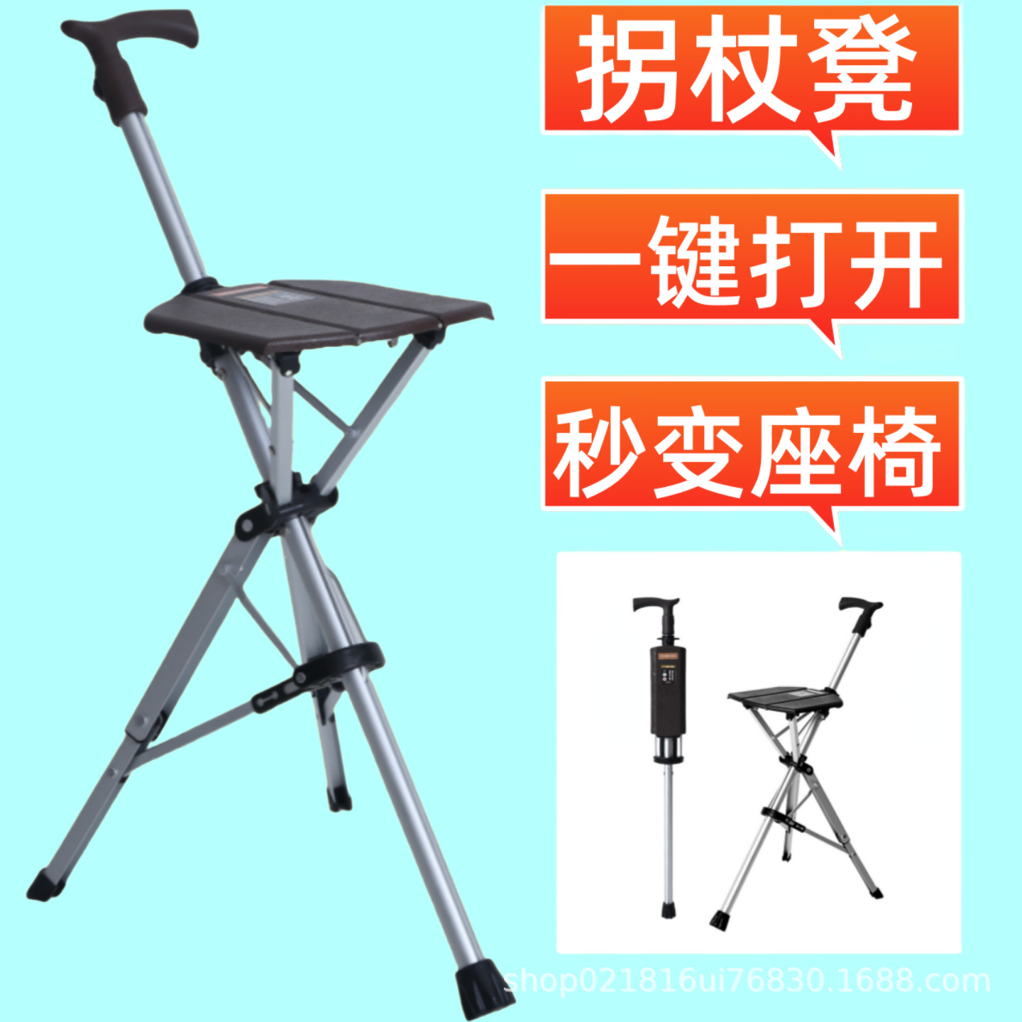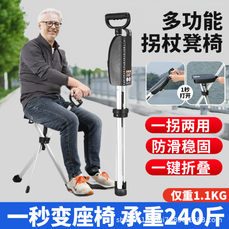 【跨境】老人拐杖凳手杖折叠椅拐棍多功能防滑助行便携老年人椅子