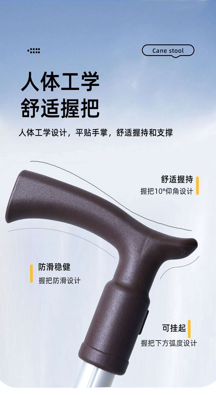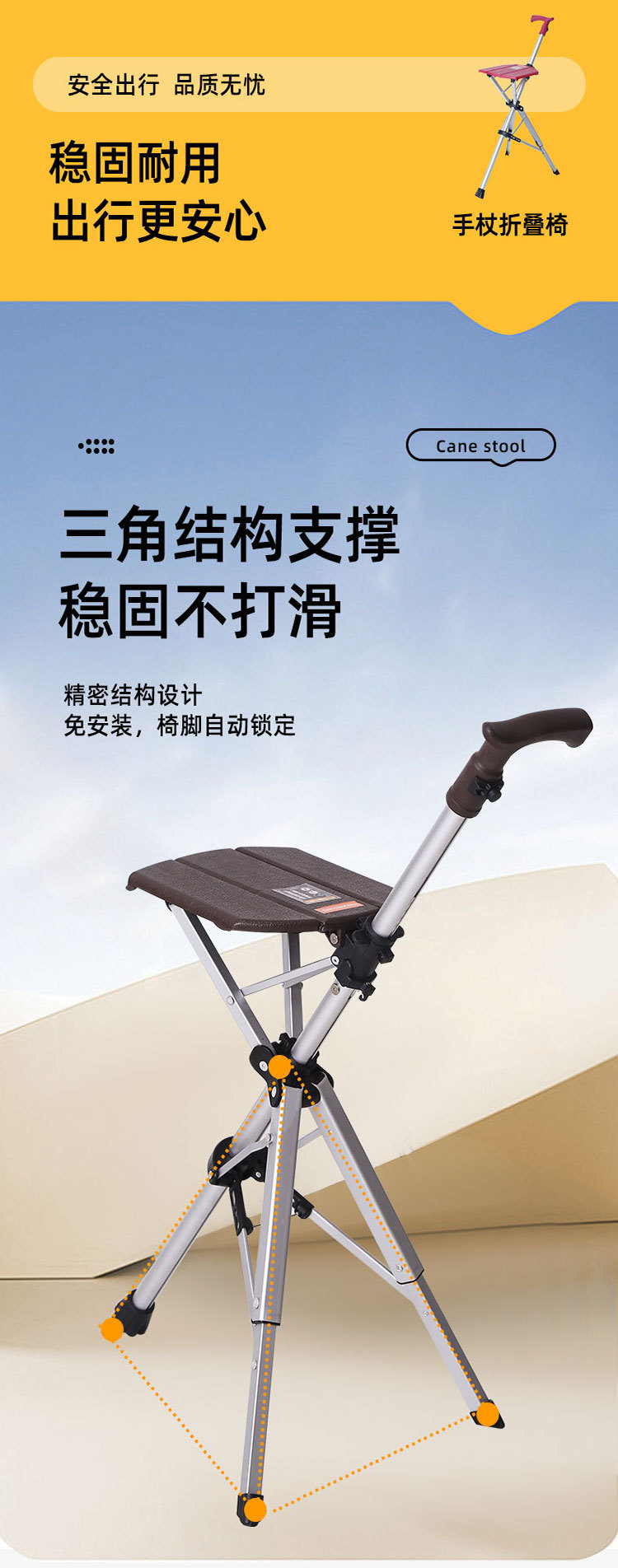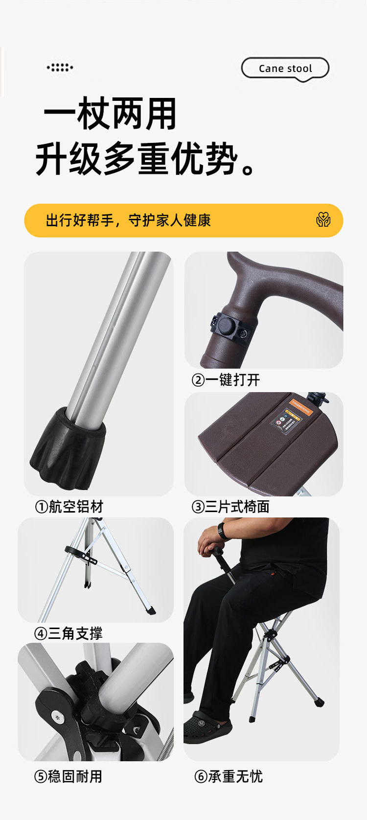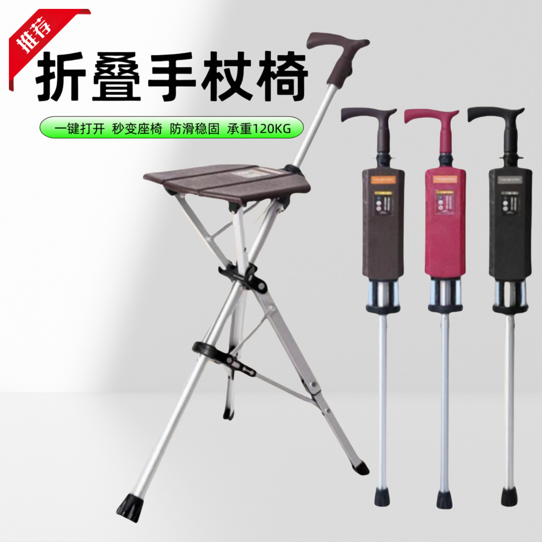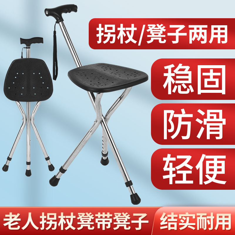 【跨境】老人拐杖凳手杖折叠椅拐棍多功能防滑助行便携老年人椅子