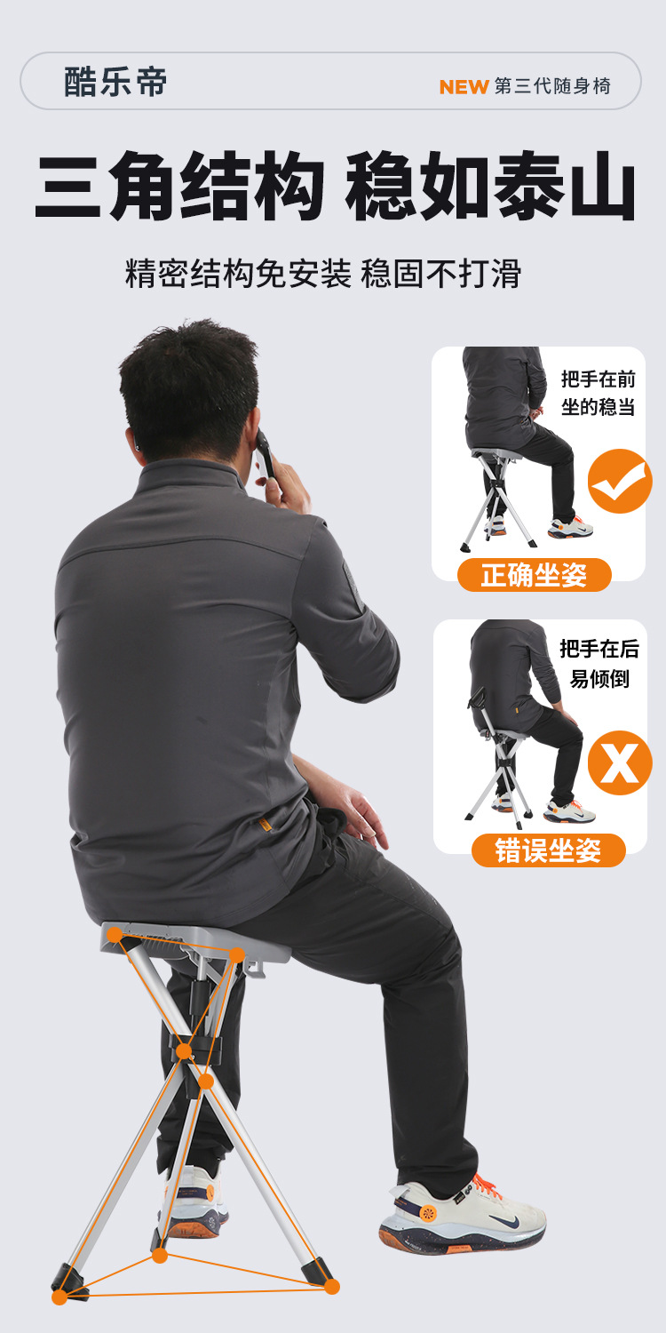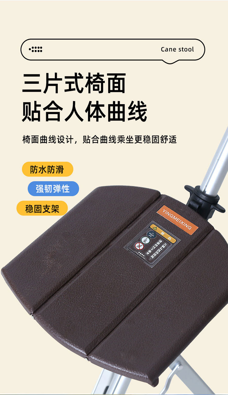 【折りたたみ腰掛け】ワンクリックで老人の松葉杖の腰掛けを開けます。