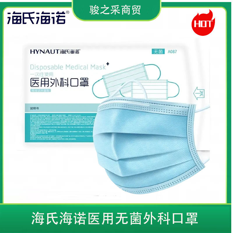 海氏海諾医療用サージカルマスク、滅菌済み、防塵、メルトブローン生地、三層構造、大人用、家庭用、袋入り、携帯用