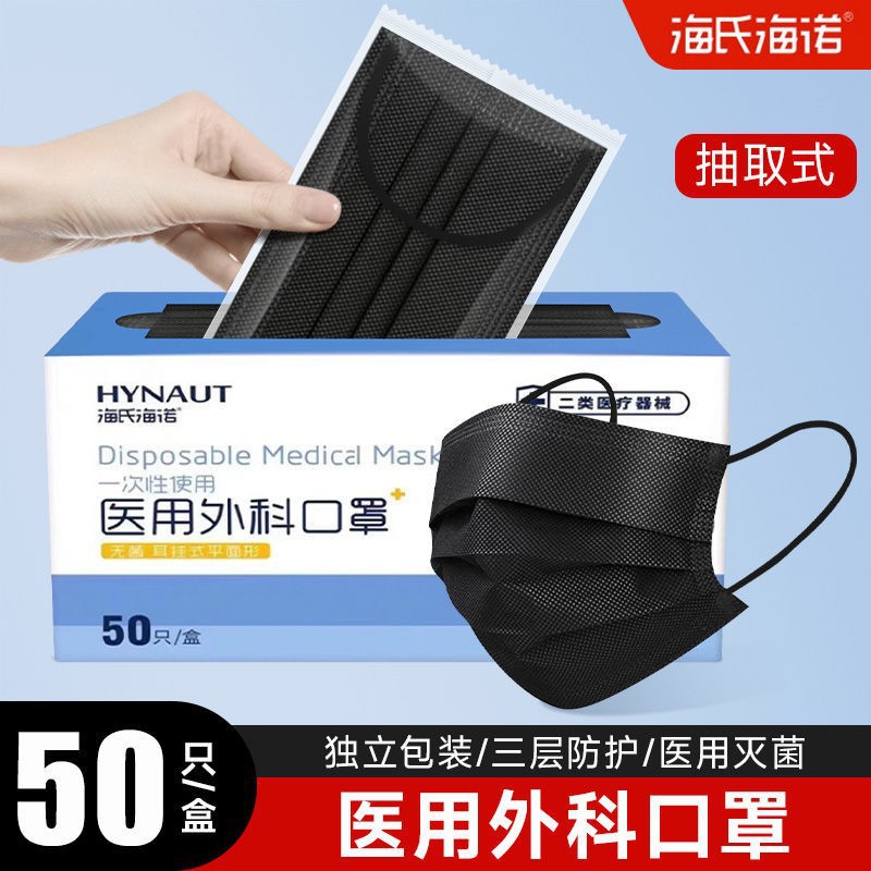 海氏海諾使い捨て医療用外科マスク黒色無菌成人三層防護50匹独立包装