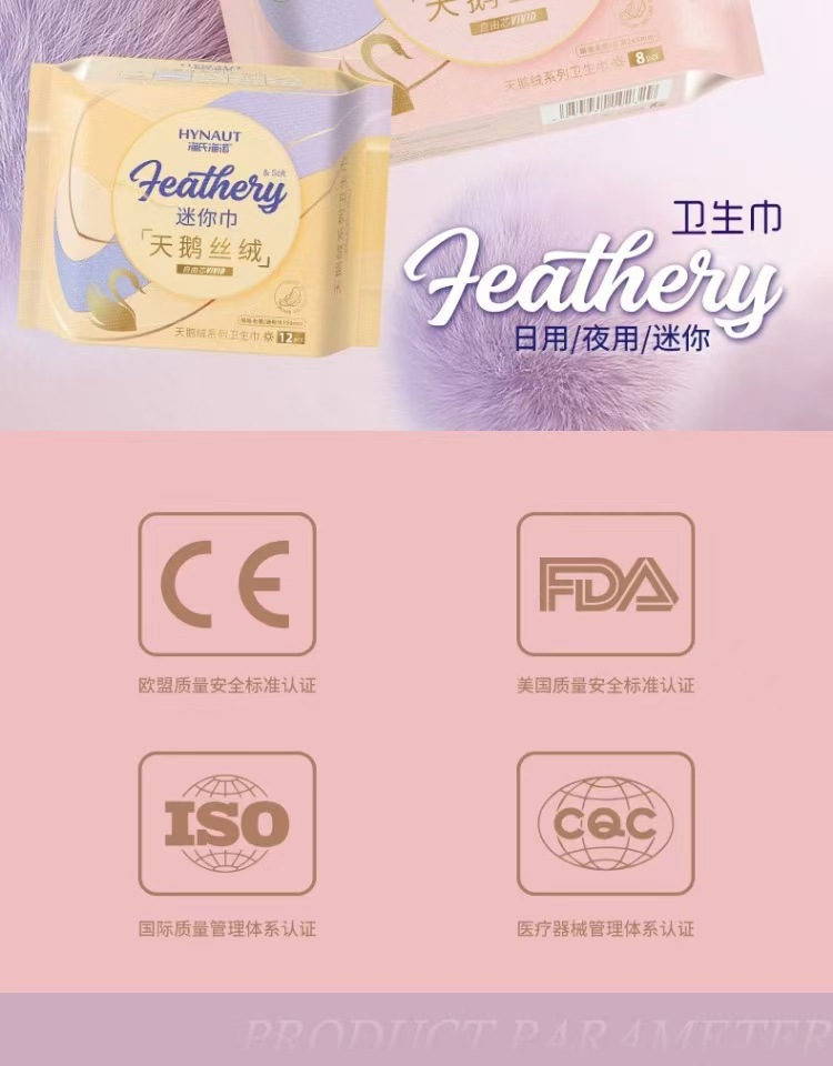 海氏海諾白鳥のベルベットの生理用ナプキンのおばさんは日用夜にミニで無感覚で通気性が薄いので、瞬吸いして吸収しやすいです。