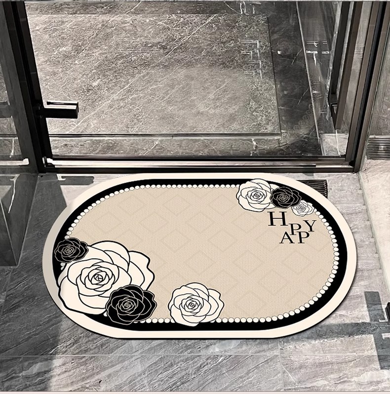 現物軽豪華花卉異形装飾床マット浴室吸水滑り止め速乾珪藻泥足マットラベル代発