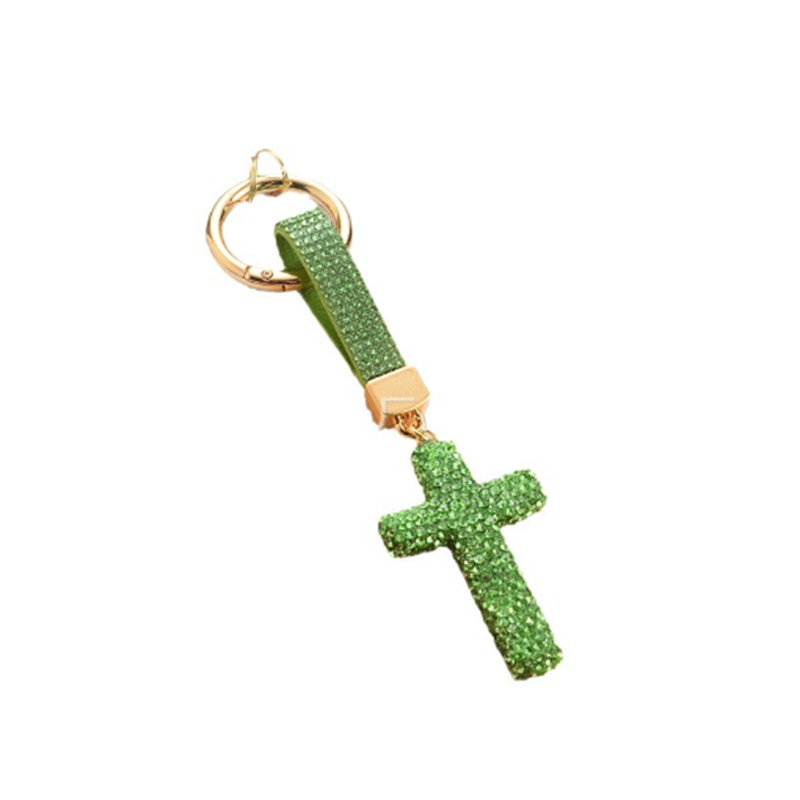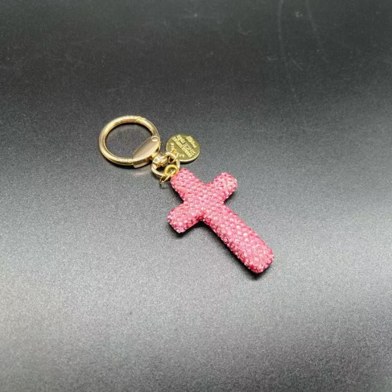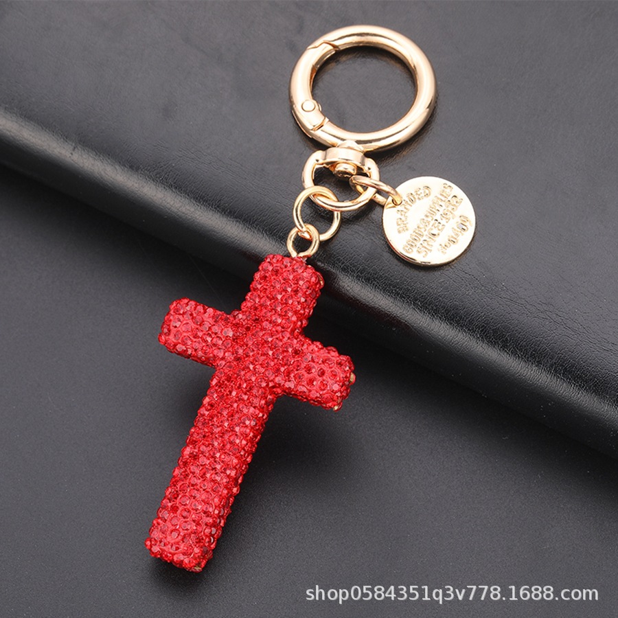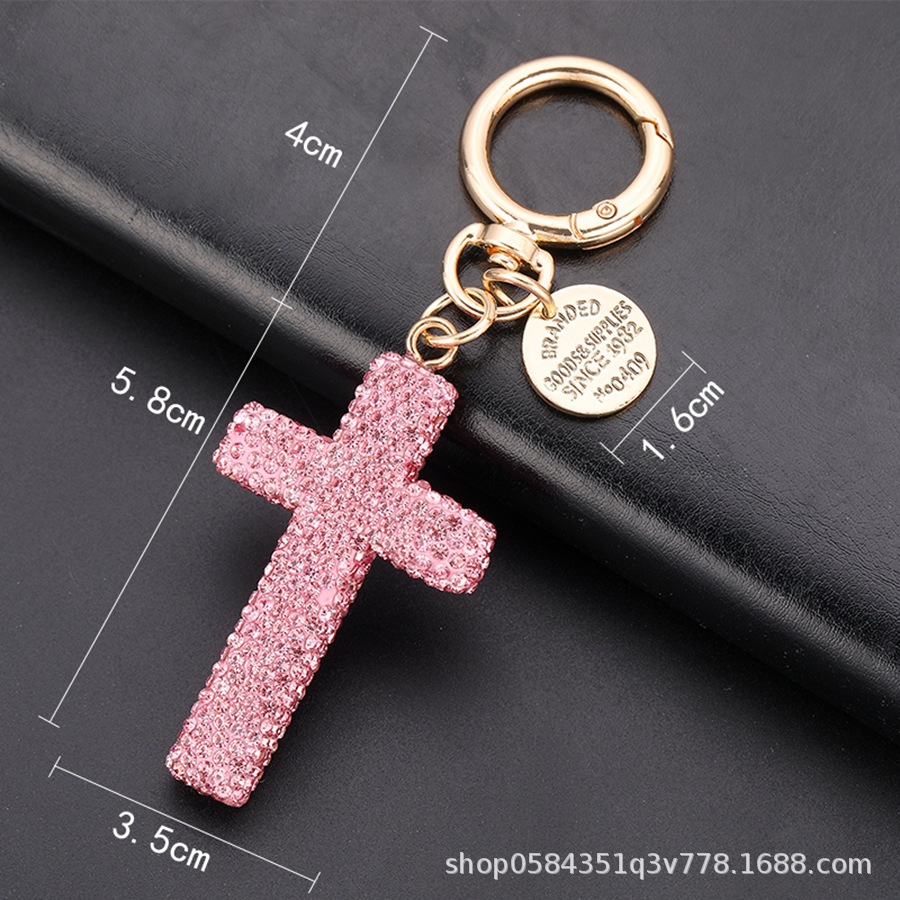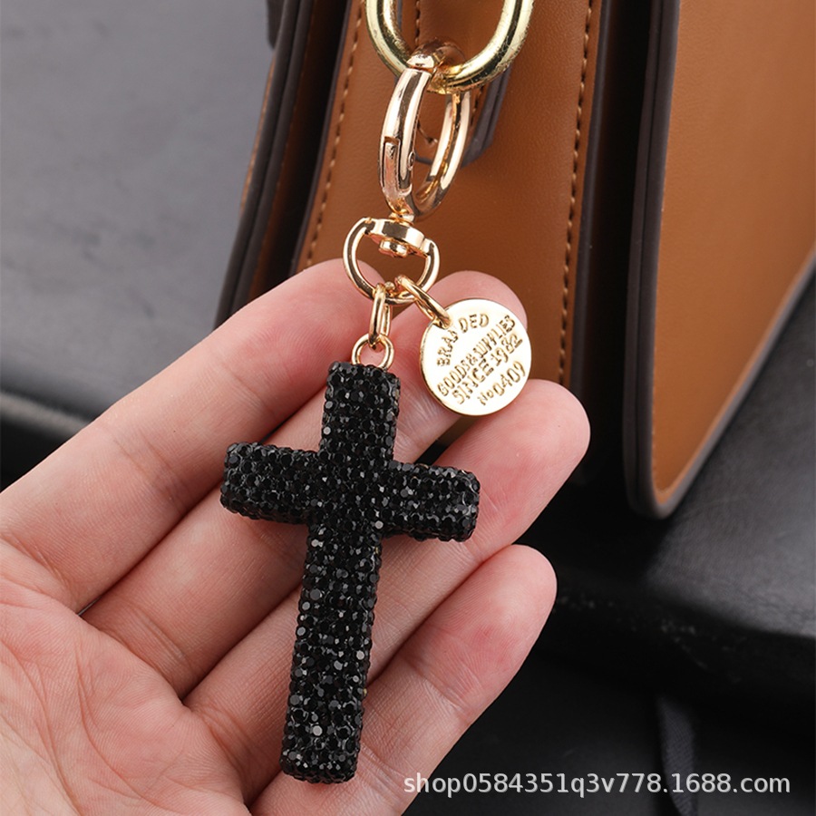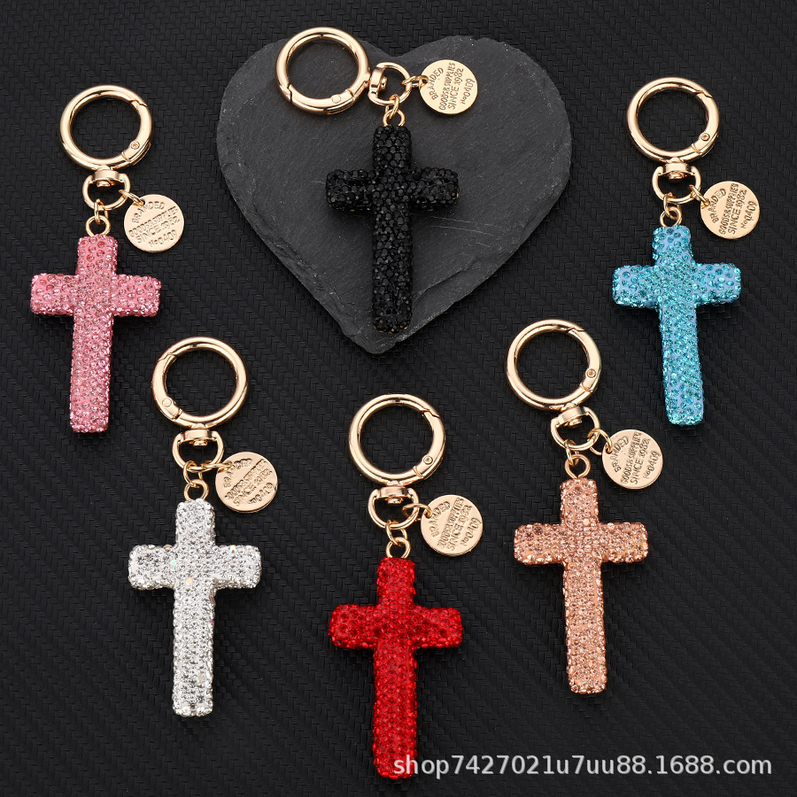 新款陶泥带钻十字架钥匙扣镶钻汽车钥匙链创意包挂饰跨境男女通用