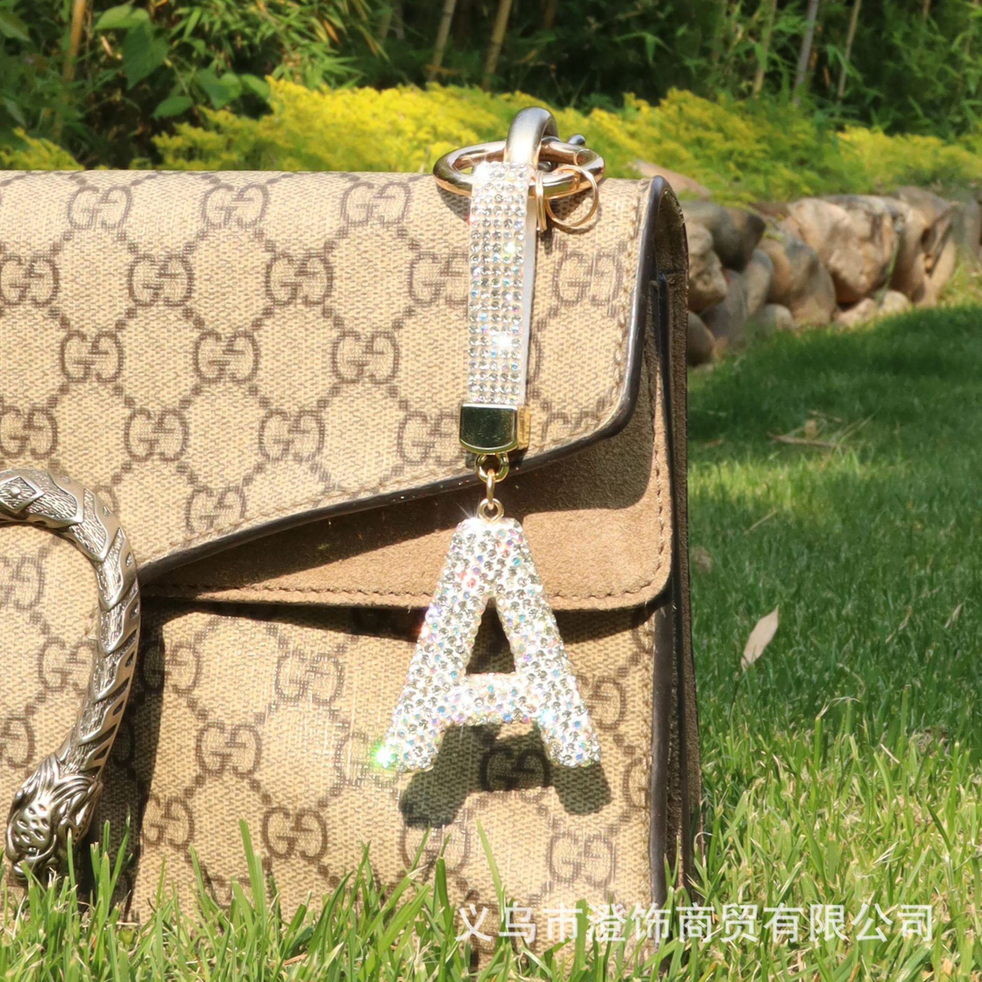 跨境满钻高级感英文字母钥匙扣陶泥镶钻女挂件包包装饰汽车钥匙链