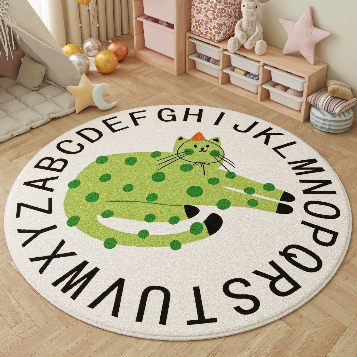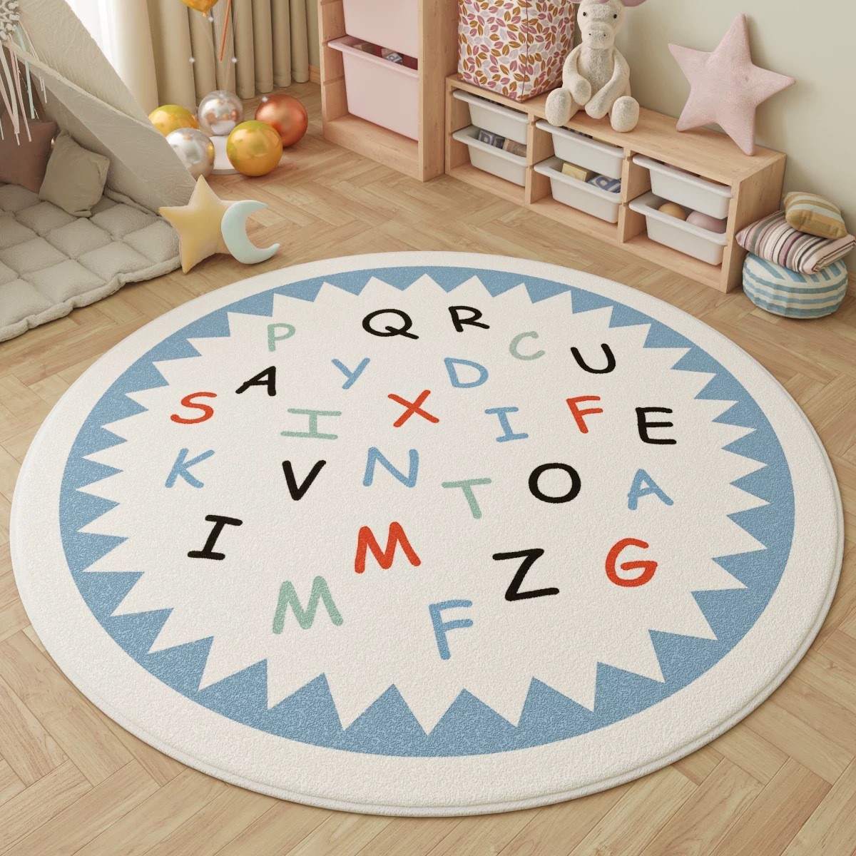 跨境简约字母圆形地毯防滑耐脏卧室床边毯子创意儿童房仿羊绒地垫