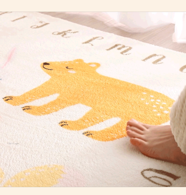 儿童房圆形地毯卧室仿羊绒床边毯出租屋可爱印花卡通爬行地垫脚垫