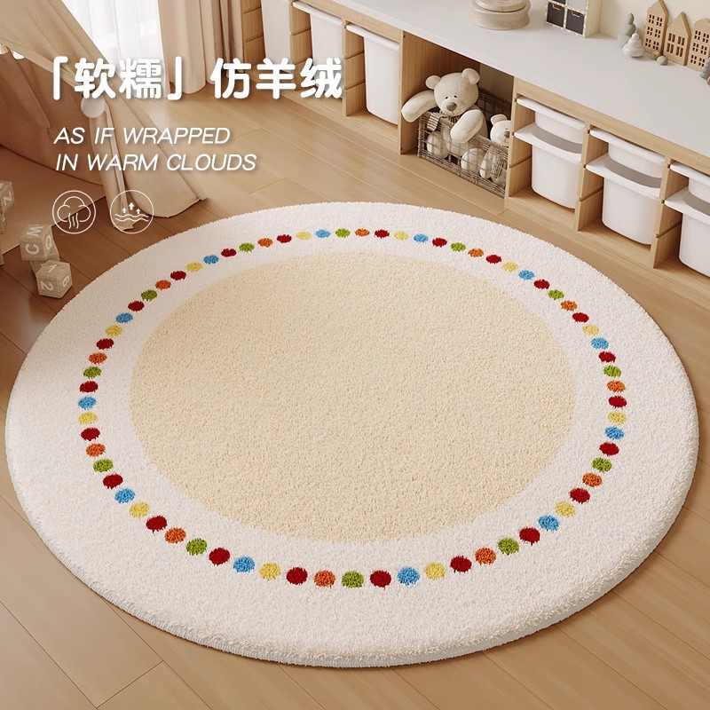 2025新款圆形地毯奶油风儿童阅读区转椅地垫学习房书房防滑脚垫子