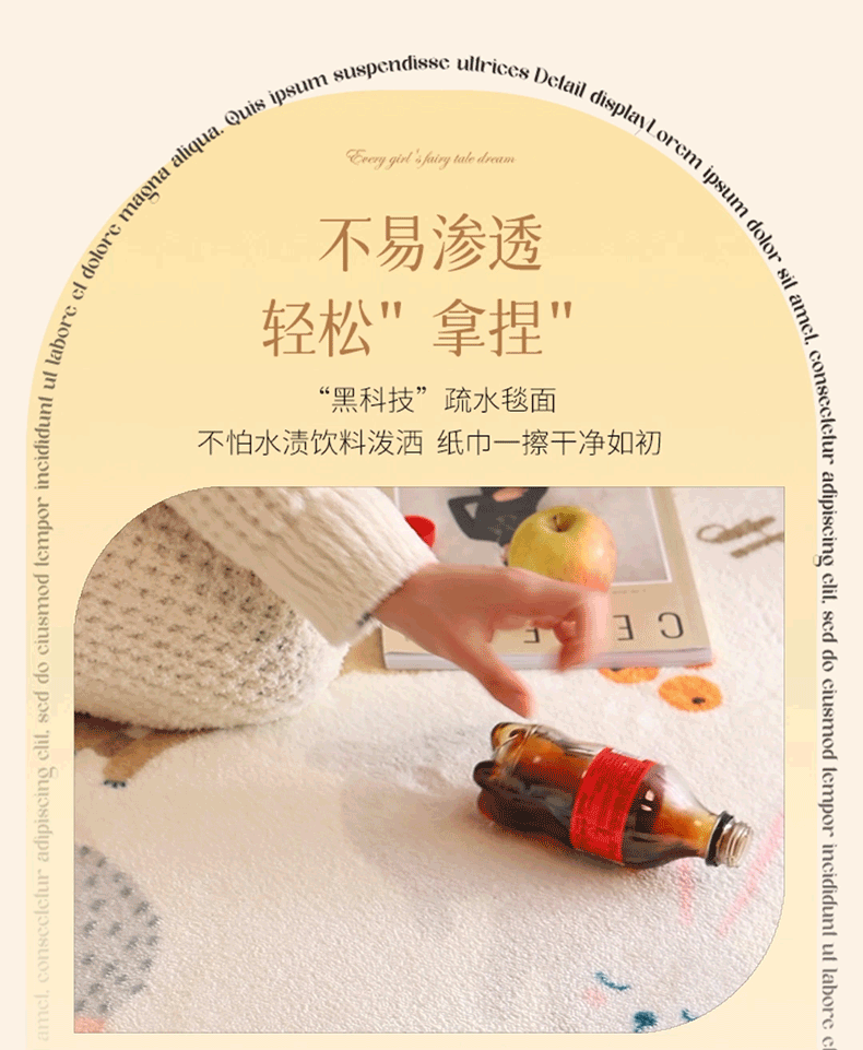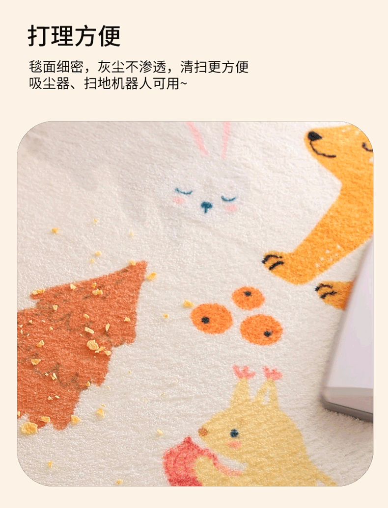 卡通可爱地毯儿童房间圆形地垫可爱女孩脚垫卧室阅读区床边圆毯