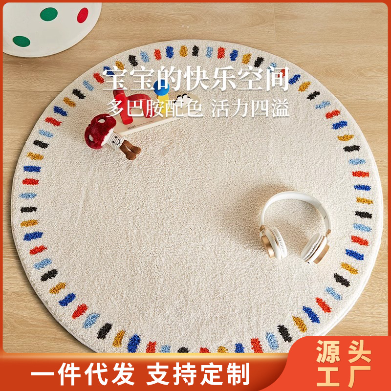 跨境小西风圆形地毯客厅儿童房圆形地垫衣帽间卧室ins风床边地毯