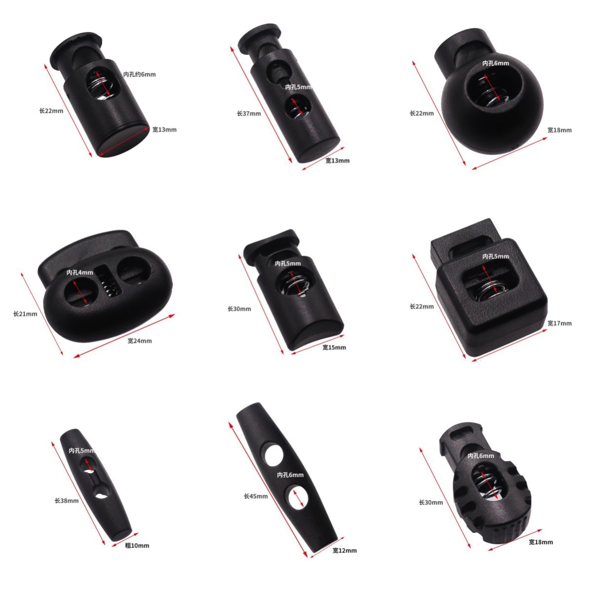 プラスチックのスプリングのボタンのメーカーの黒色の双穴のカラーの透明なゴムのボタンの紐はブタの鼻のボタンの猫の目のボタンを掛けます。