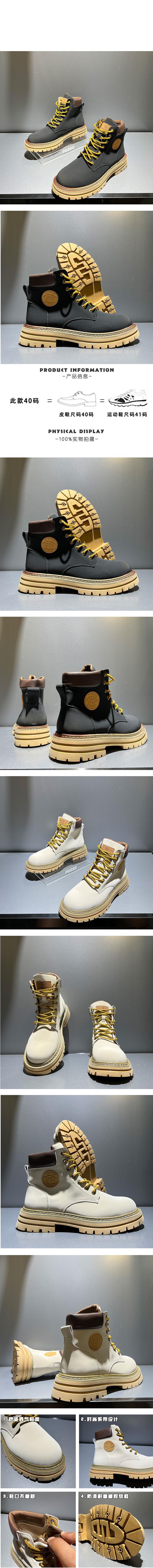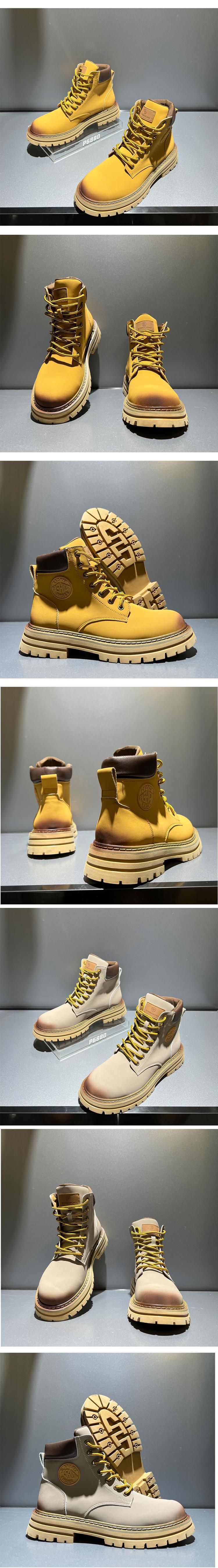 男性の高組のマーティン靴は2024年秋の新型の厚い底が高くなって、ショートブーツの工装靴の英倫大黄靴を持ちます。
