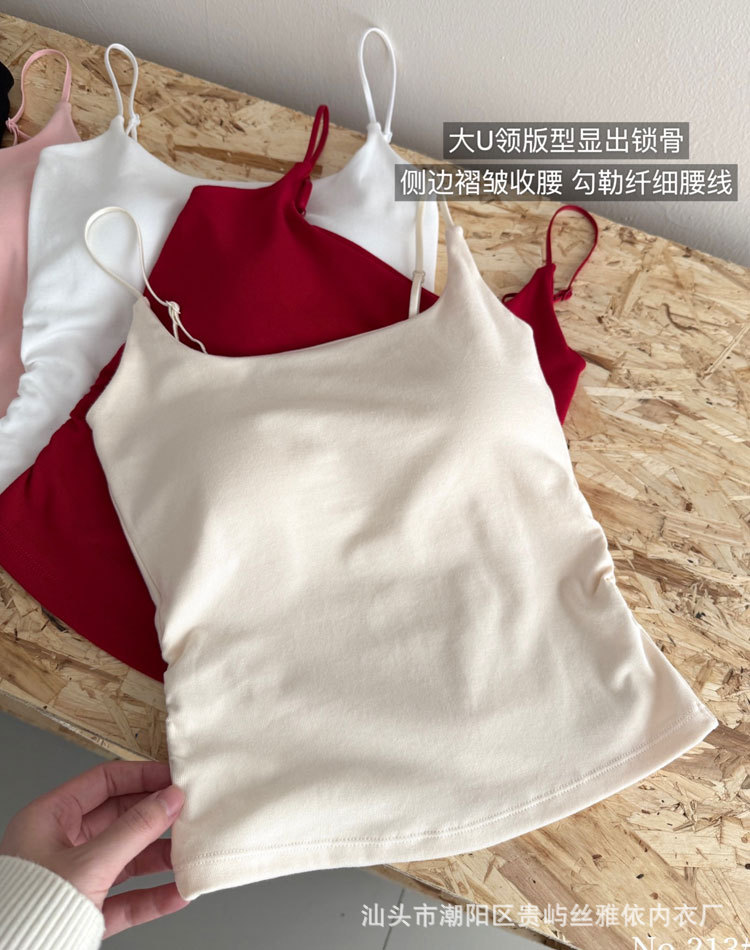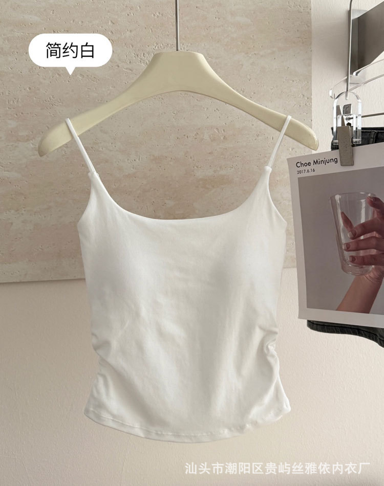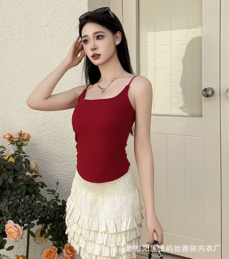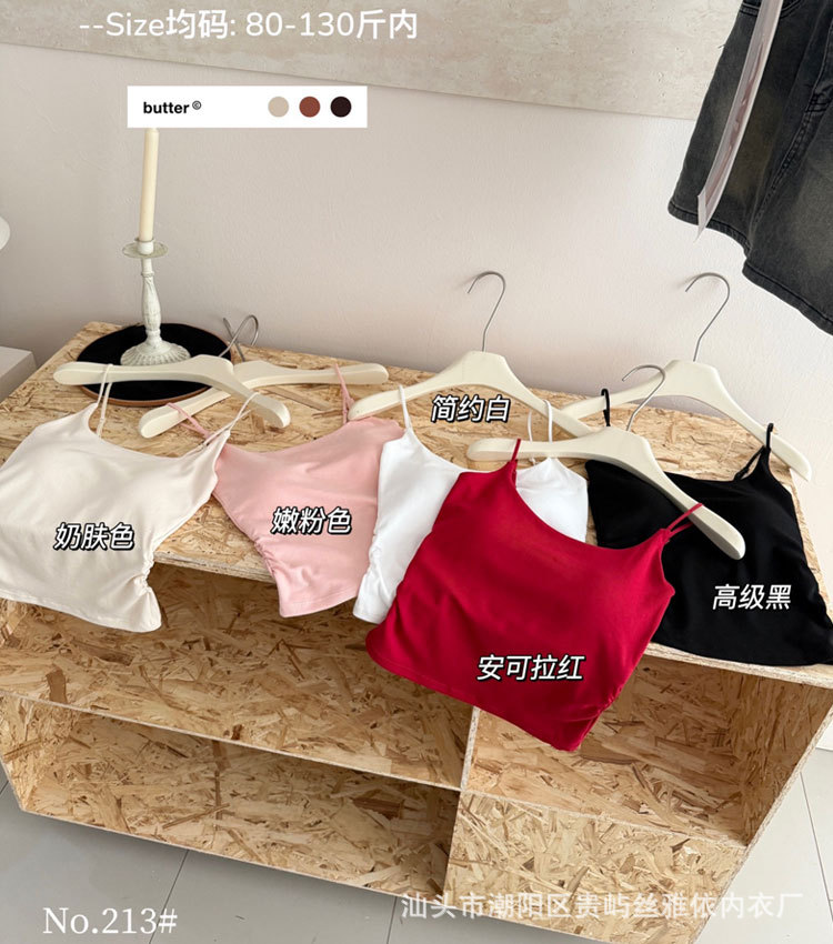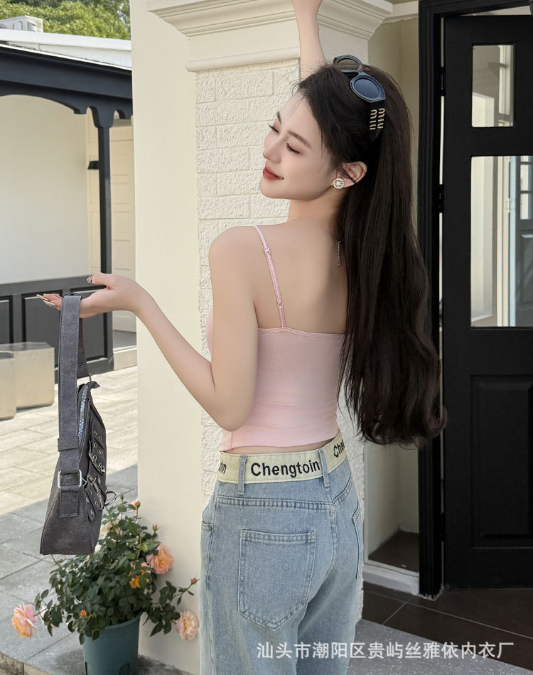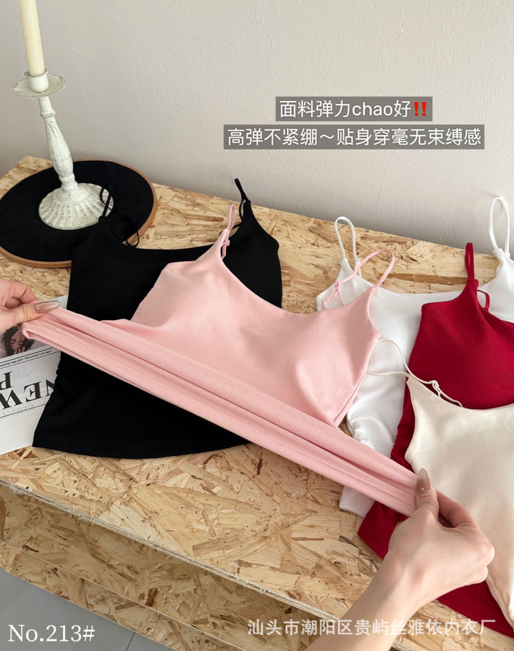 纯色简约一字美背吊带背心女一体式固定杯内搭外穿舒适抹胸上衣