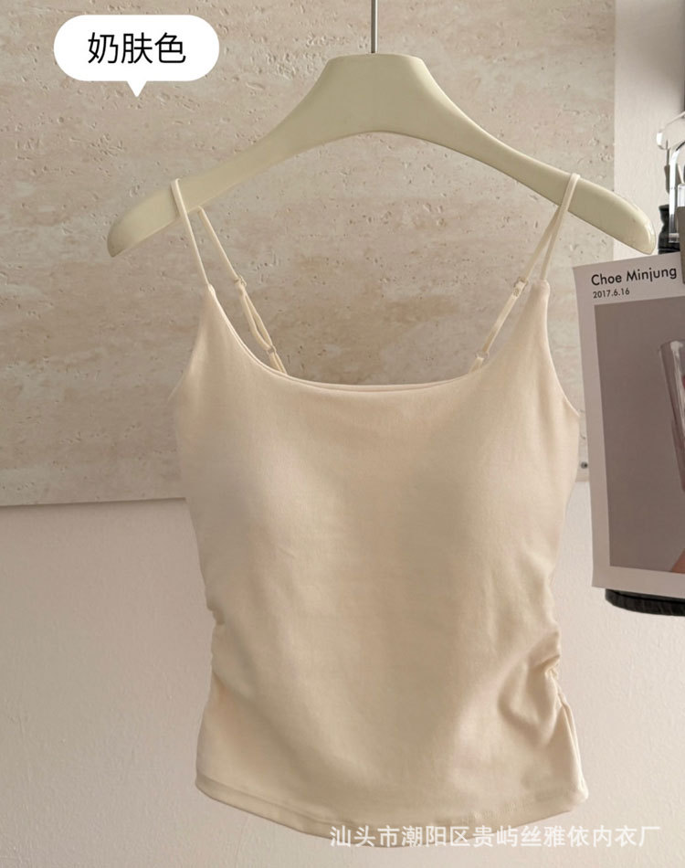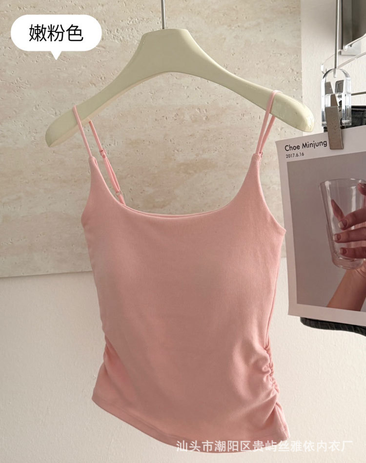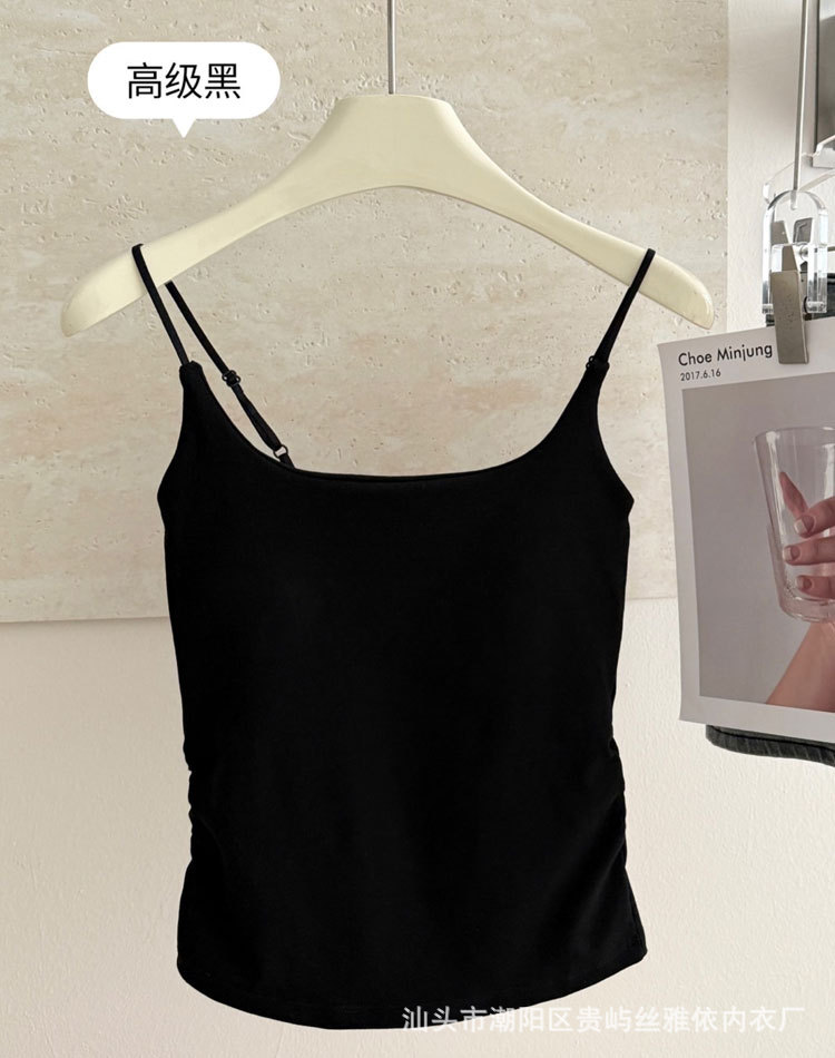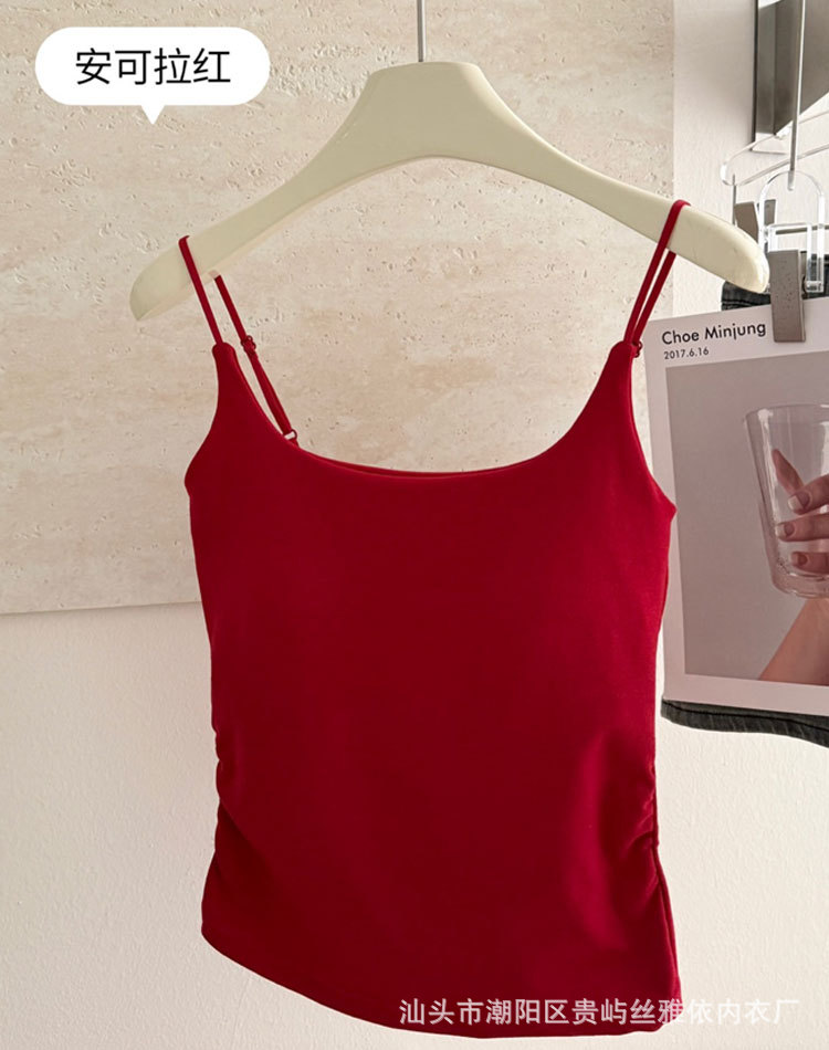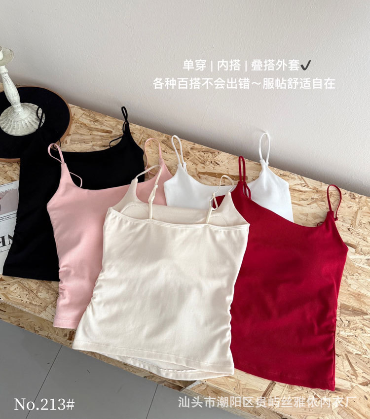 纯色简约一字美背吊带背心女一体式固定杯内搭外穿舒适抹胸上衣