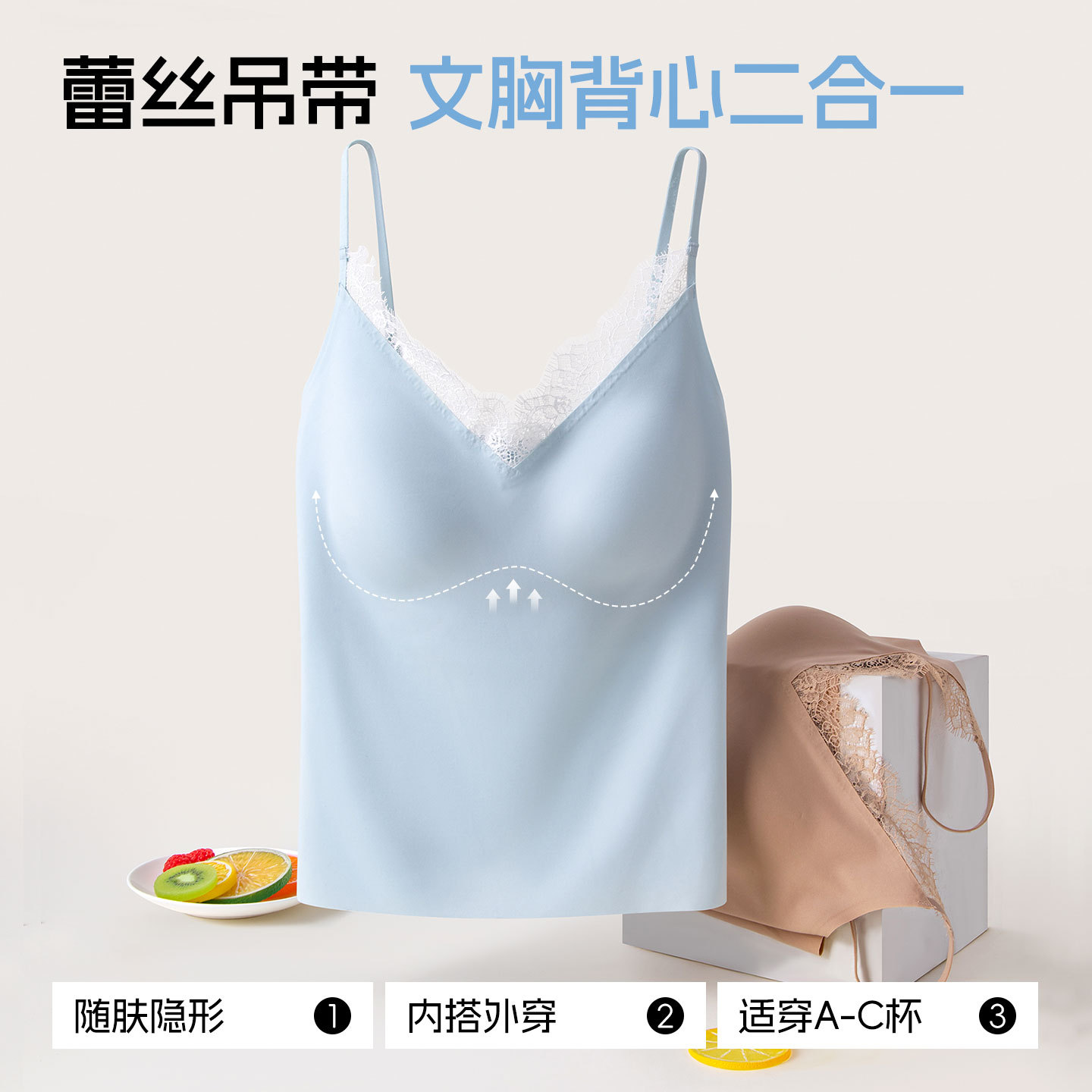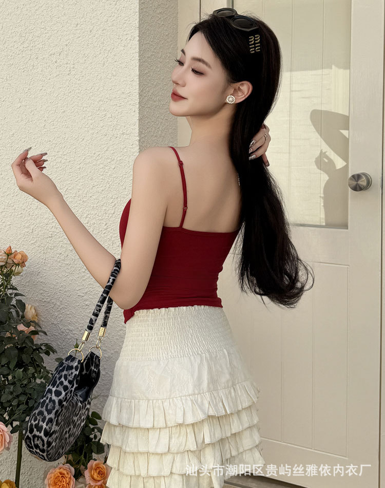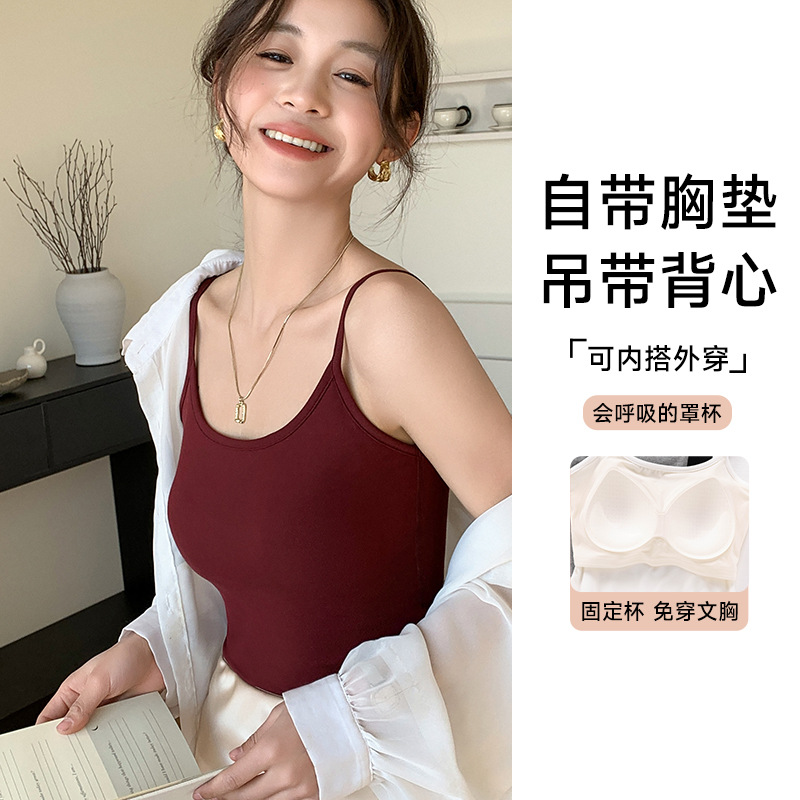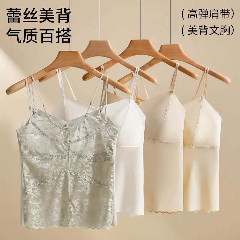 吊带背心深V蕾丝隐形肤带胸垫显瘦内搭外穿免穿文胸美背打底上衣