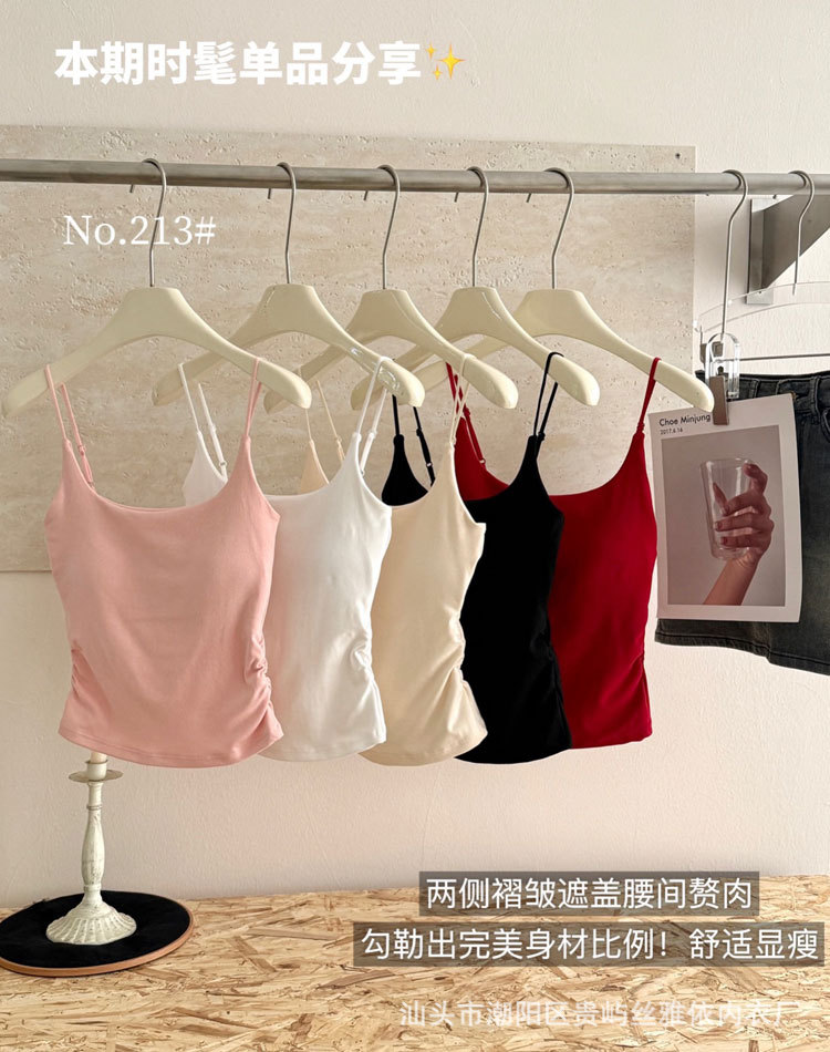 筋理無痕純色美背キャミソール固定カップ無鋼輪快適内着防光胸下着女