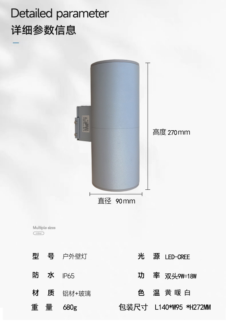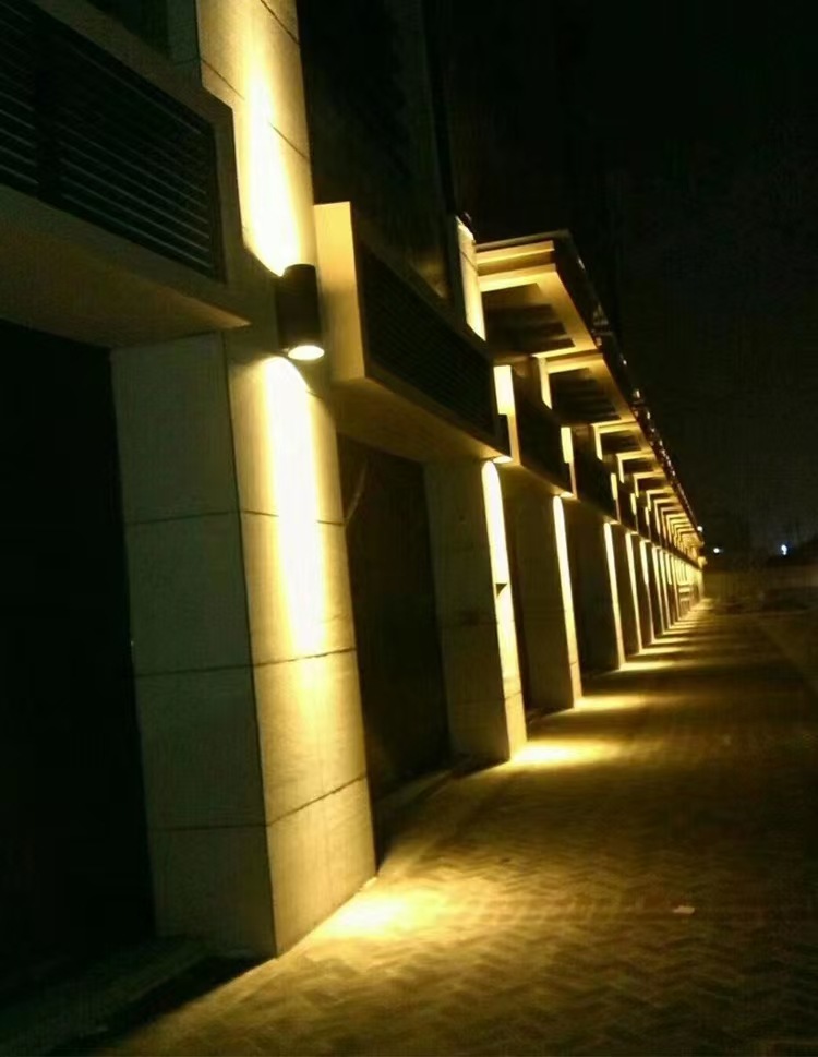 LED屋外防水ダブルヘッドウォールランプ、外壁用上下発光ウォールランプ、屋外用狭角丸ビームスポットライト