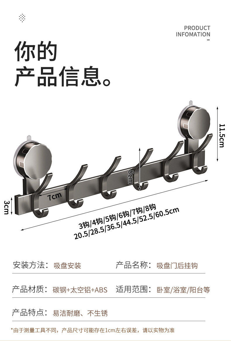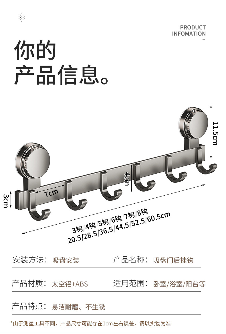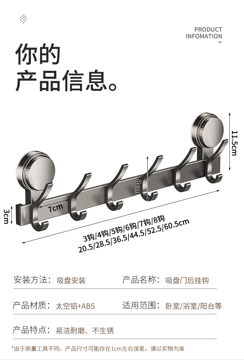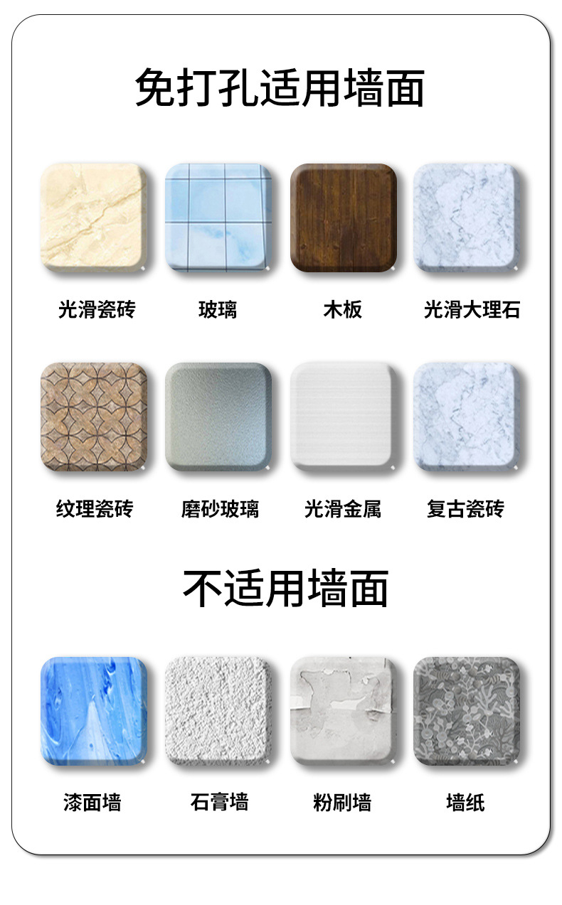 (2)安装请注意,墙面需平整坚固的玻璃瓷砖等。不可用在粉刷墙,墙纸,石灰墙等不平整不坚固的墙面上。
