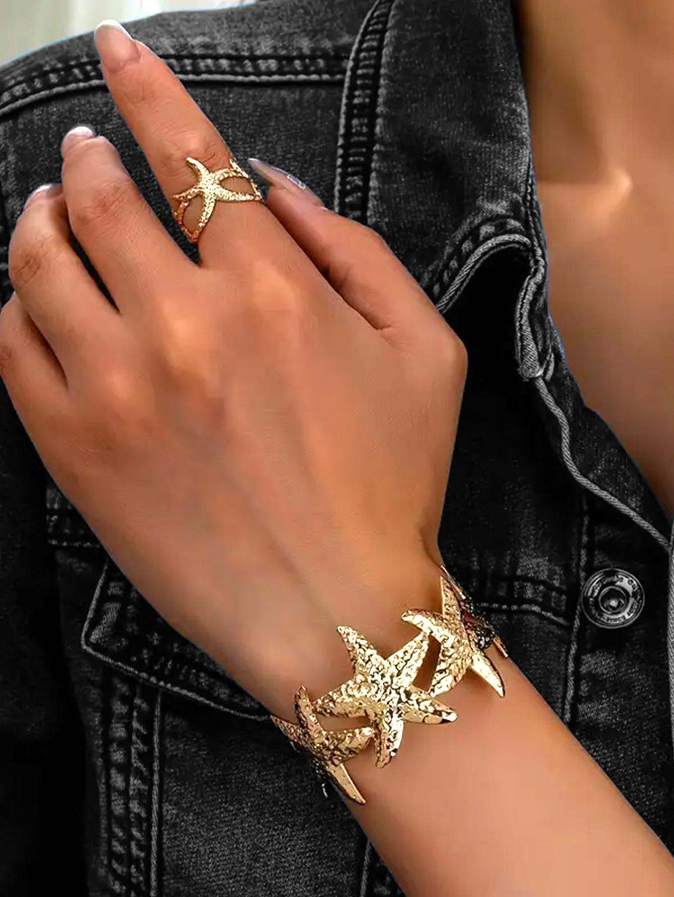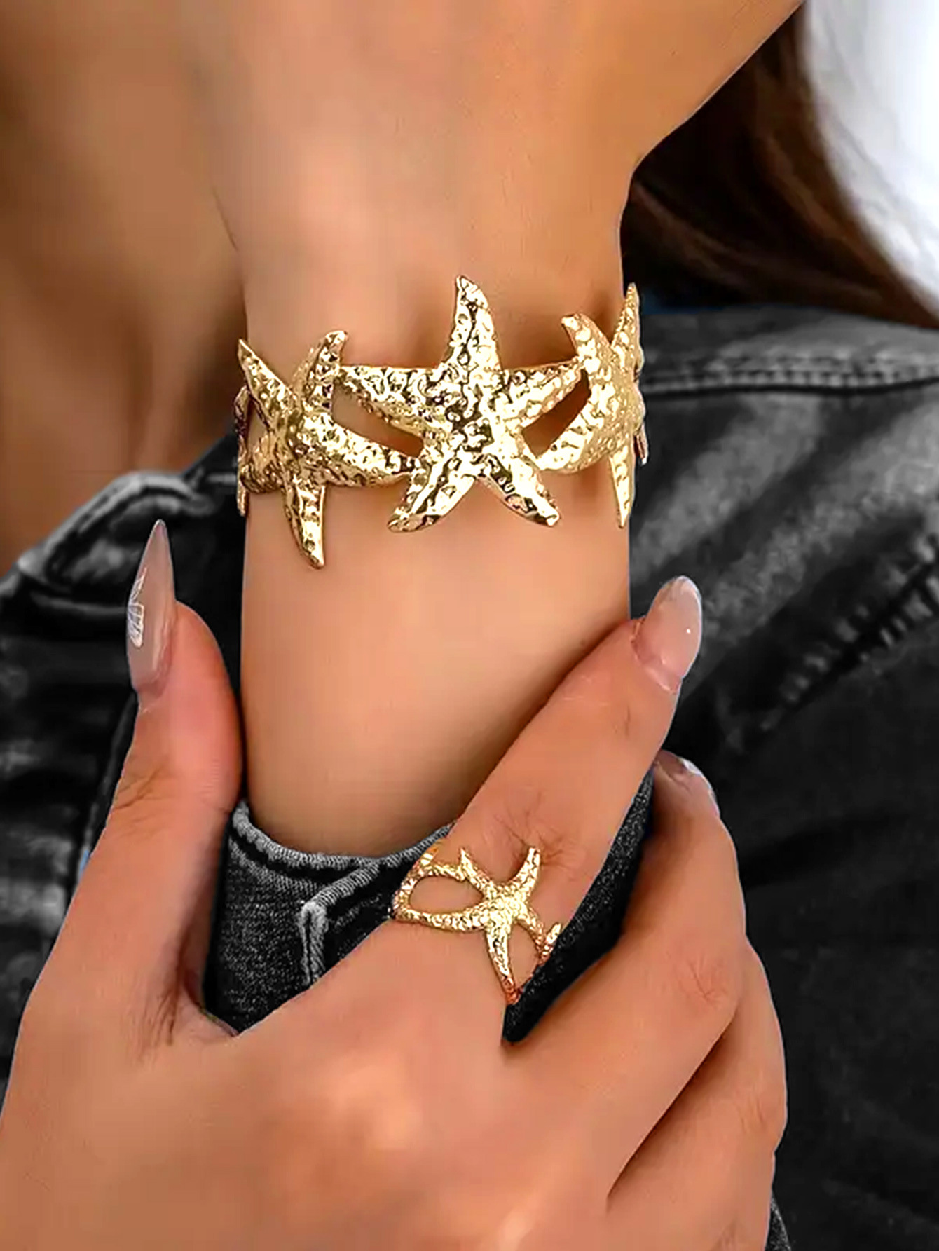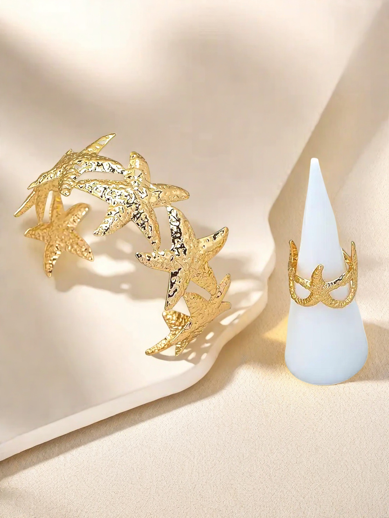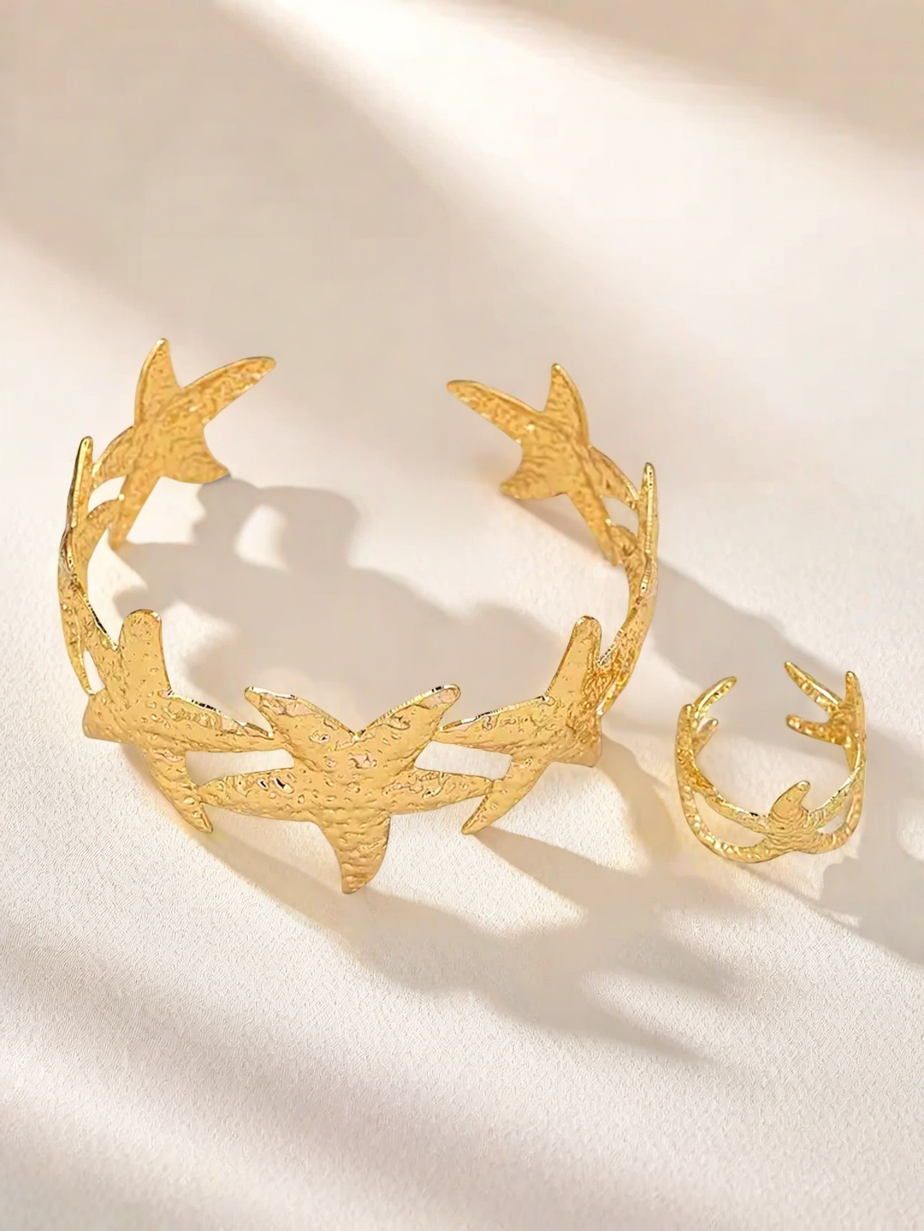 欧米の国境を越えたファッションの個性が誇張されている指輪の海星の形のブレスレットの指輪のセットの休暇の海洋の風の女性
