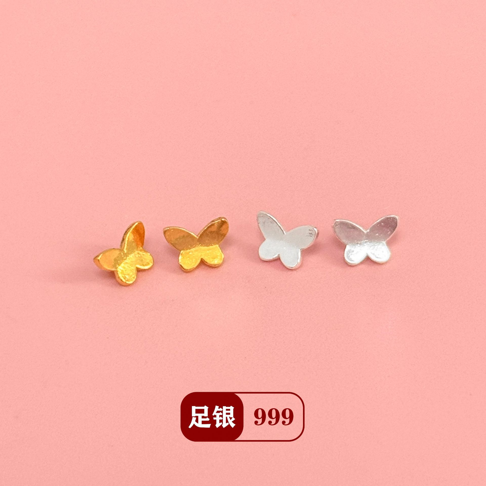 s999足银小蝴蝶纽扣编绳尾扣diy水晶手链项链串珠手串金色配件