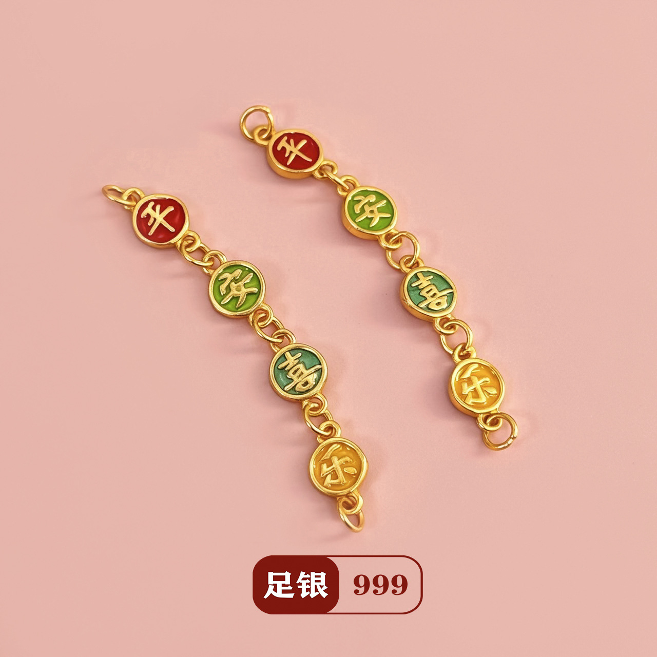 s999足银平安喜乐链子金色国风挂件diy水晶手链项链串珠编绳配件