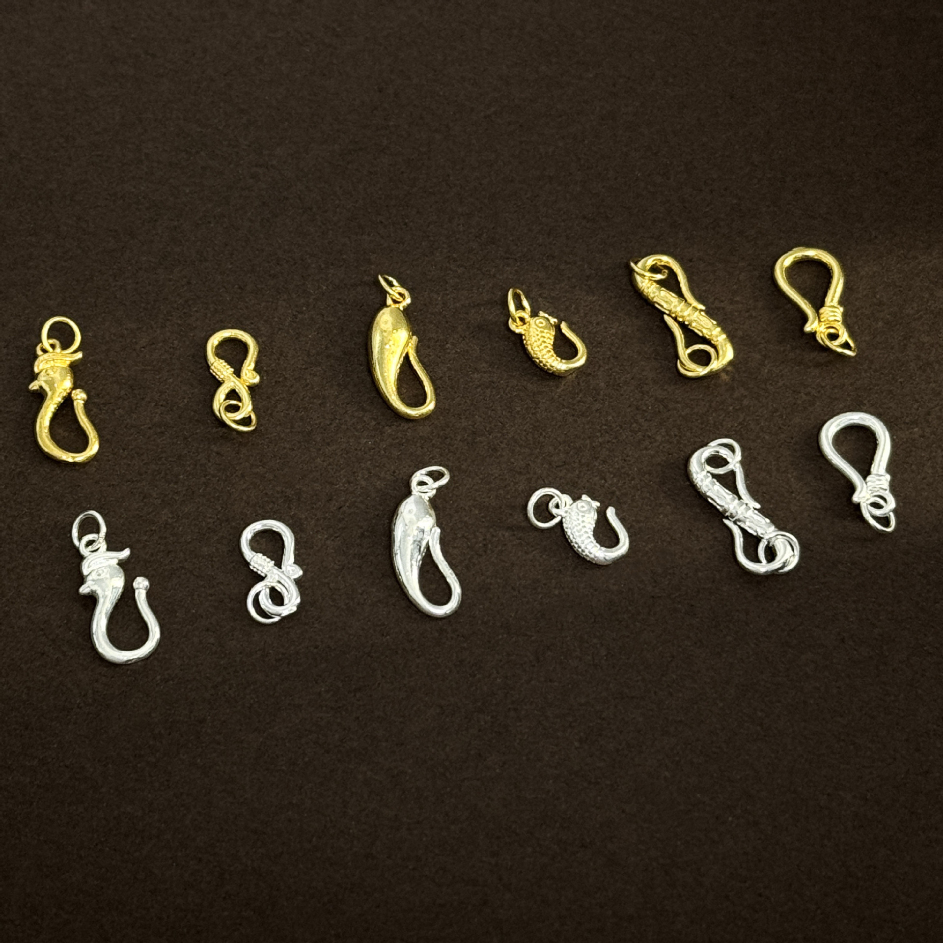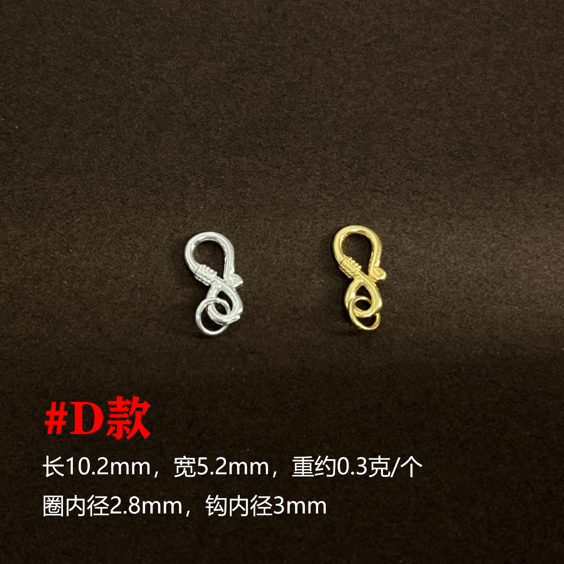 s999純銀ゴールドネックレスバックル ロブスタークラスプ接続Sバックル DIYブレスレットネックレスビーズシルバーアクセサリー編み紐パーツ