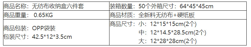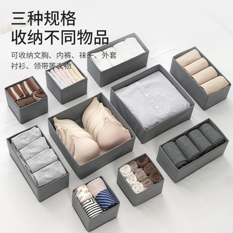 跨境无纺布六件套无盖收纳盒内衣文胸分格储物整理盒家用收纳神器