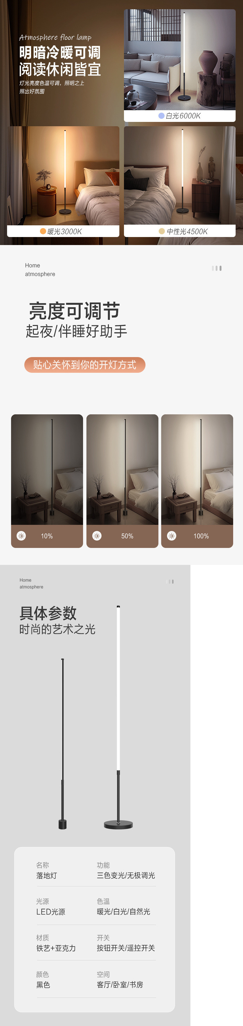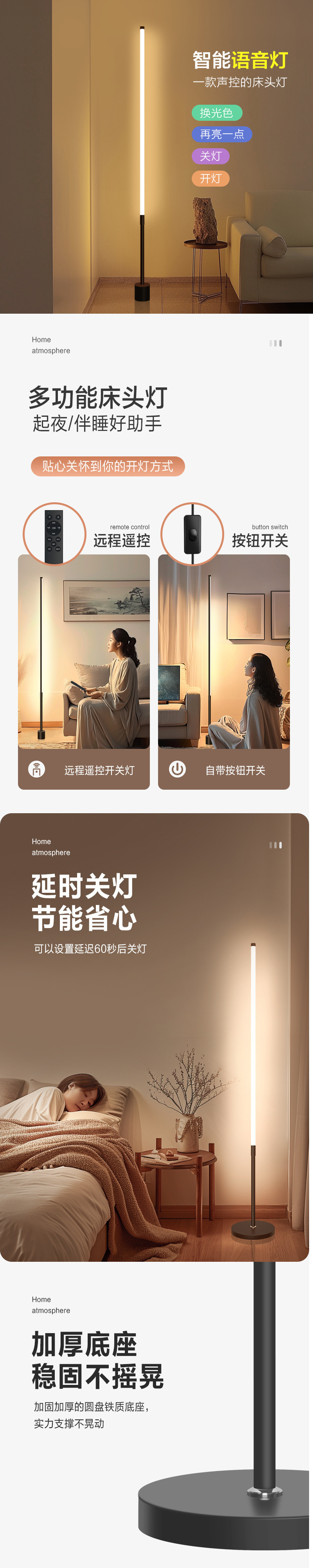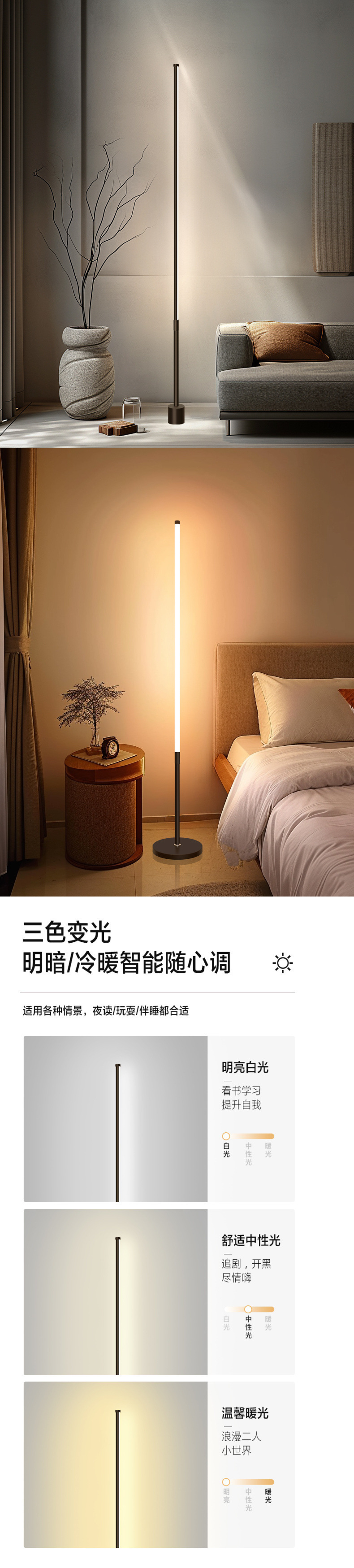 北欧フロアライトledリビングライトシンプルな寝室のベッドの背景壁創意マンションホテルの壁の隅の雰囲気灯
