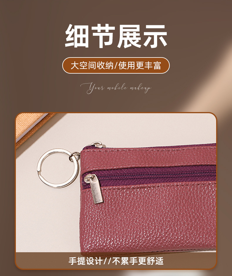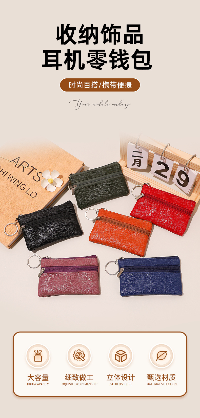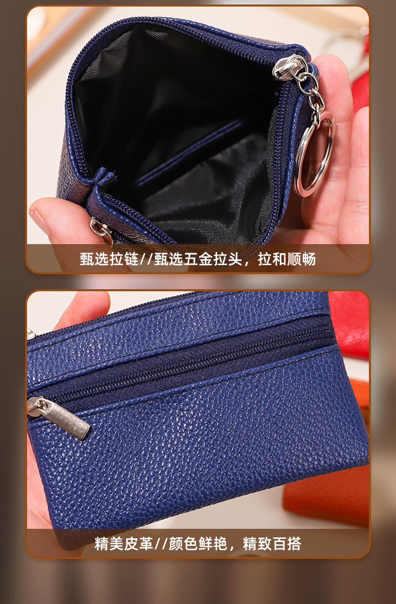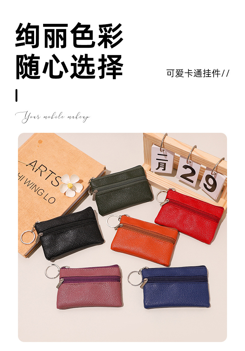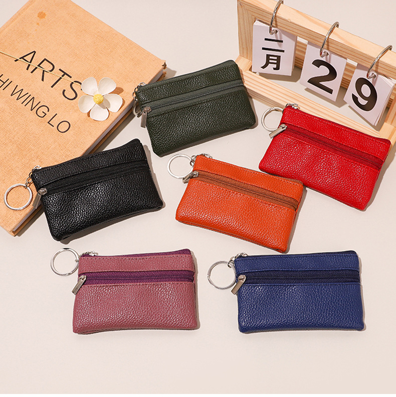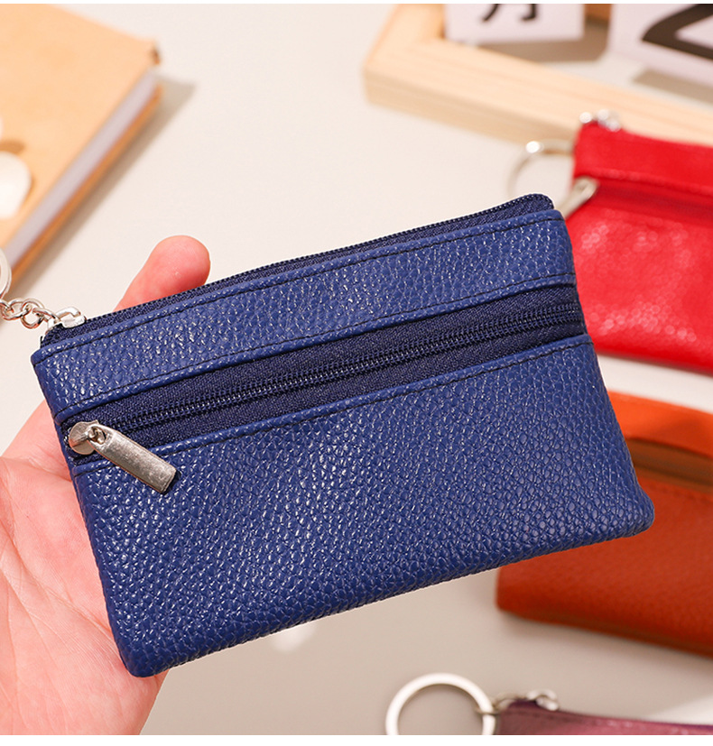 【現物卸売り】2023種類のレイシ紋双ファスナー手提げ小銭入れPU純色カードコイン収納バッグ