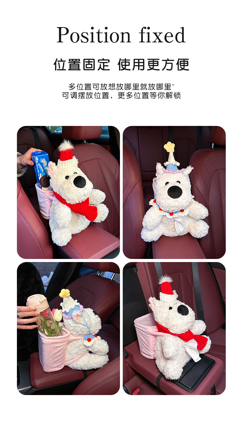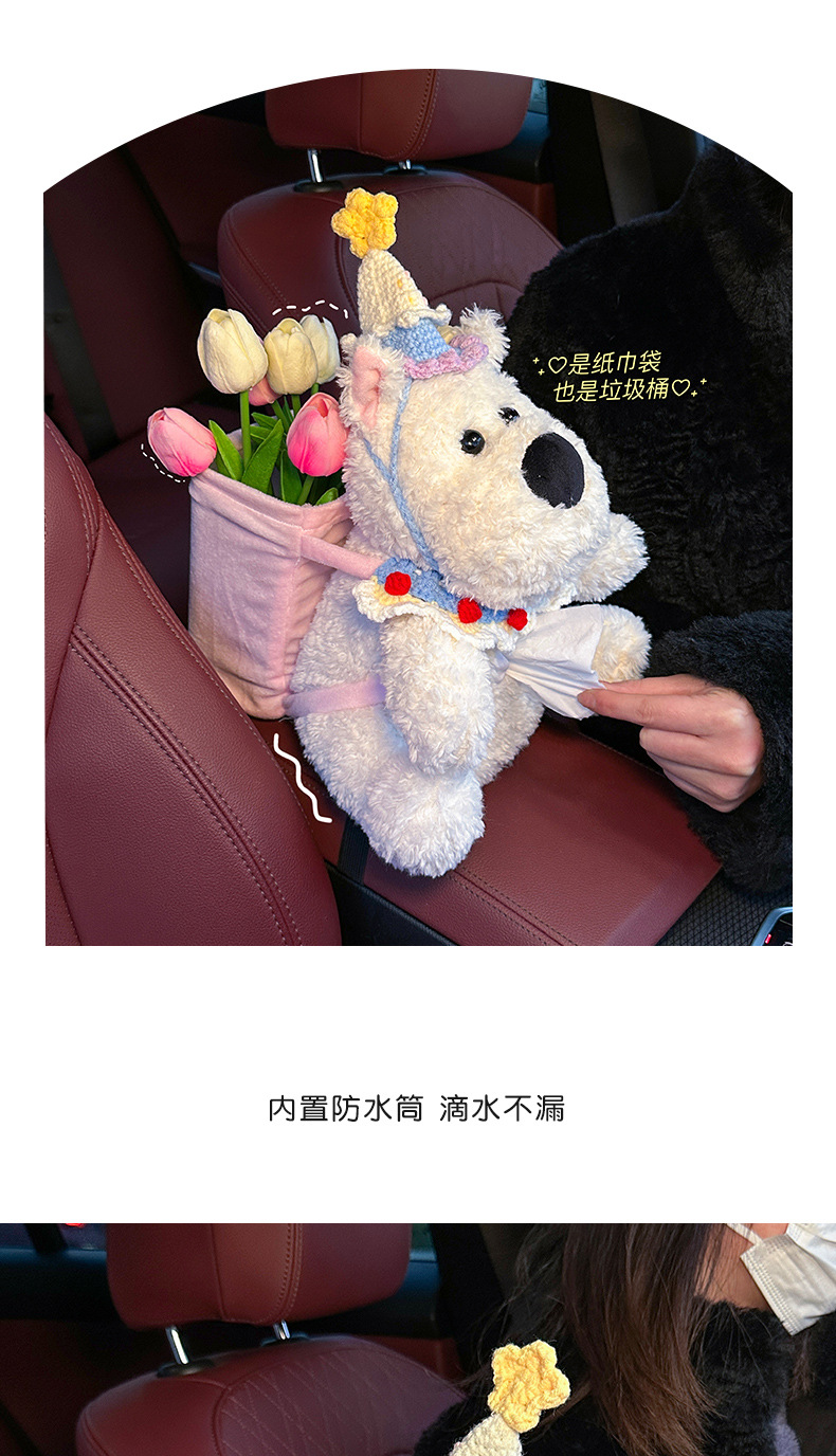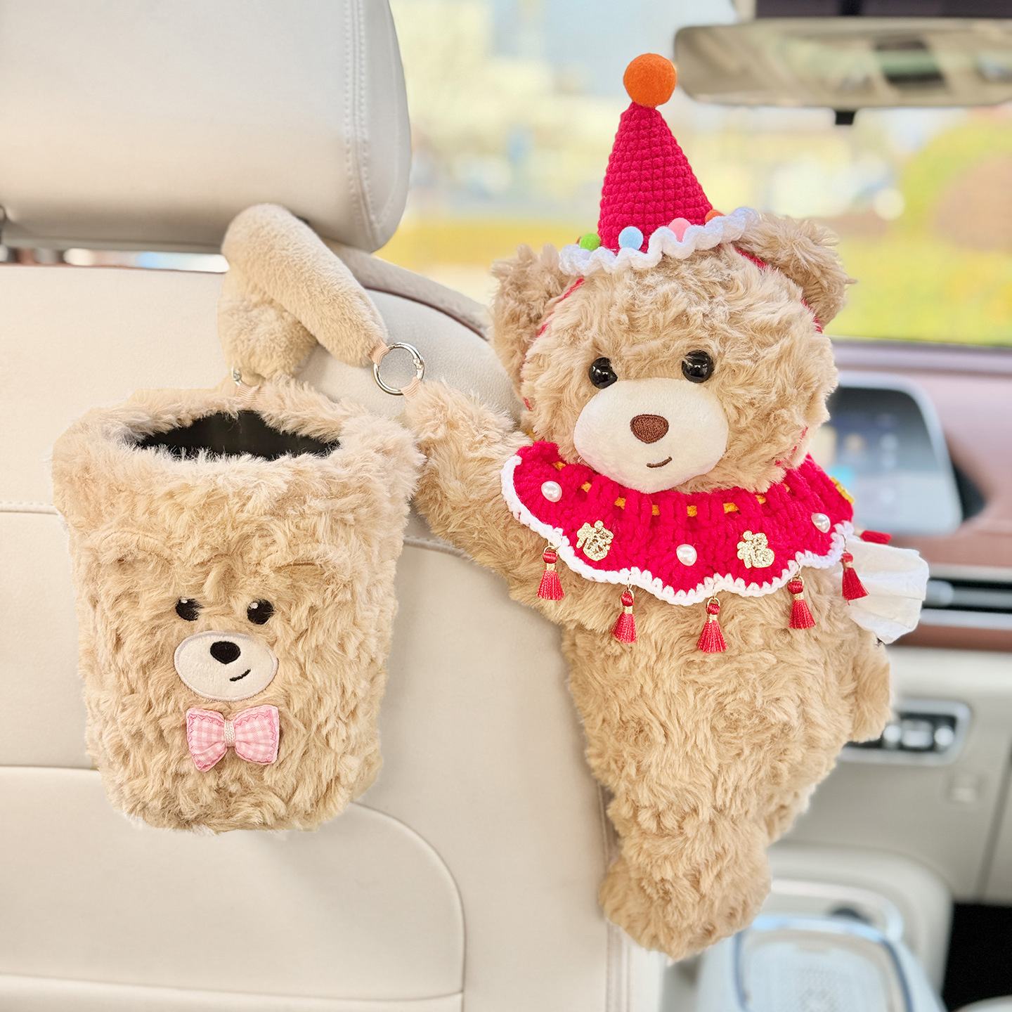 车载纸巾盒小熊挂式纸抽盒创意后排纸巾收纳垃圾桶抽纸盒二合一女