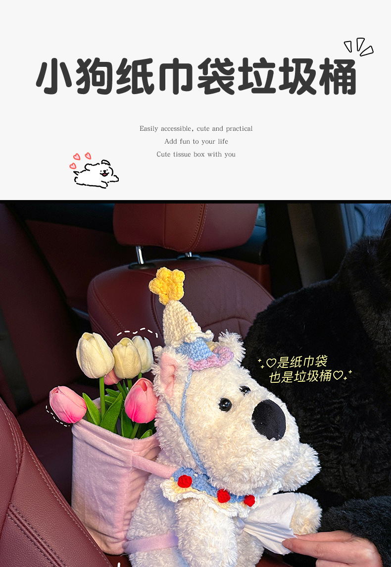车载纸巾盒可爱汽车内抽纸盒车上实用扶手箱纸巾挂袋垃圾桶二合一