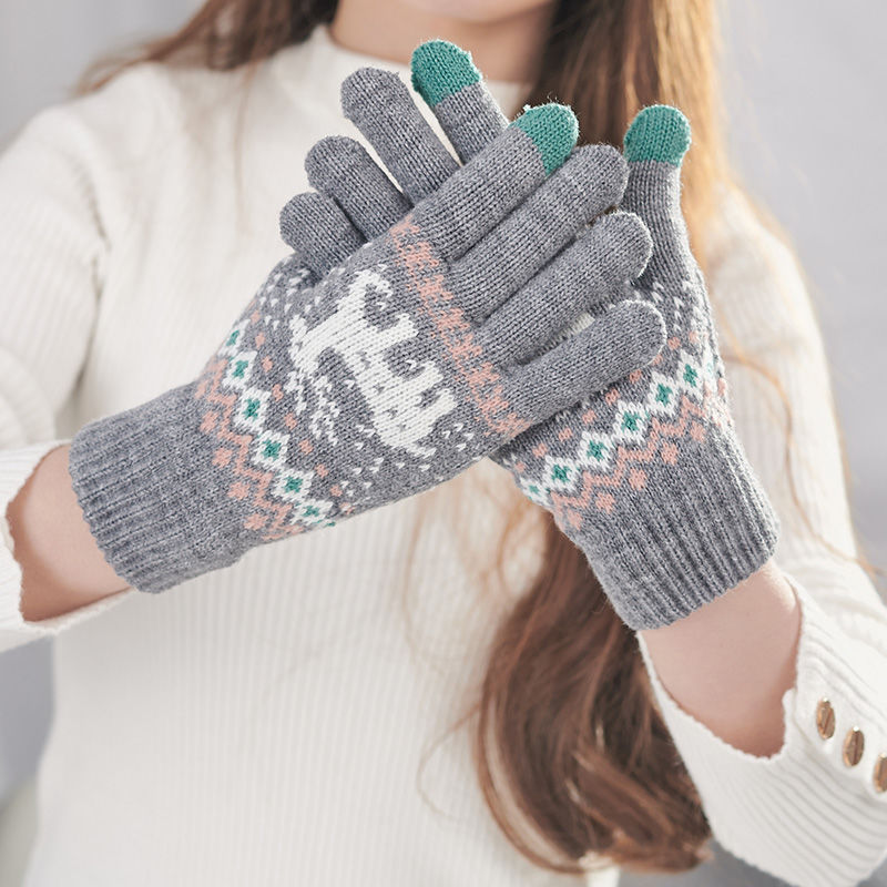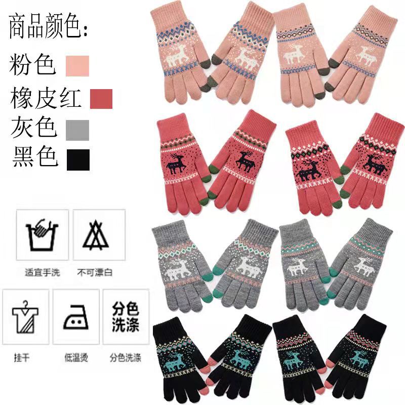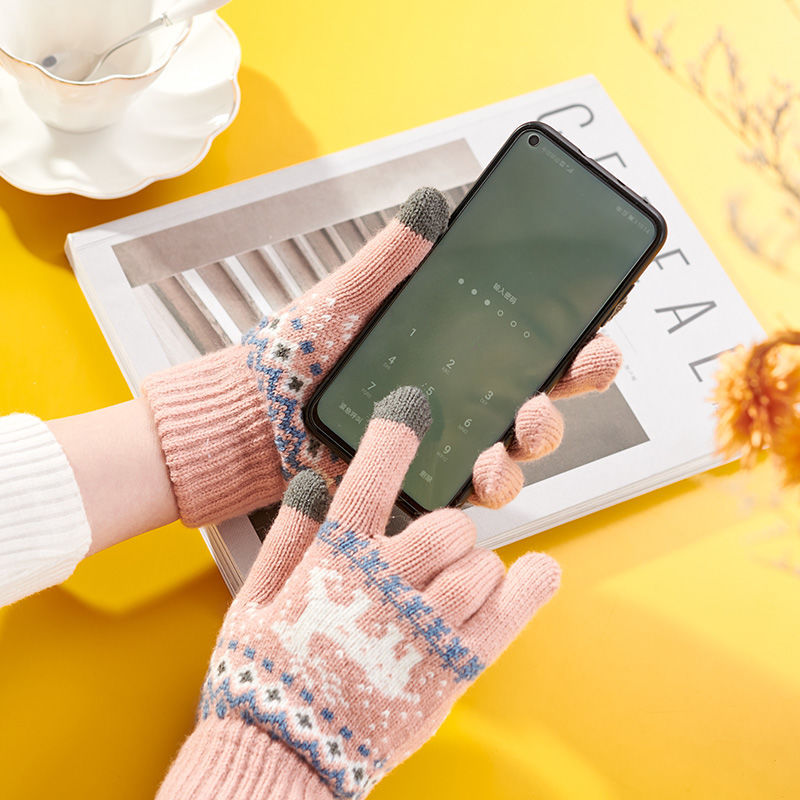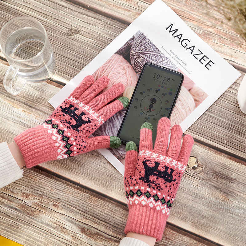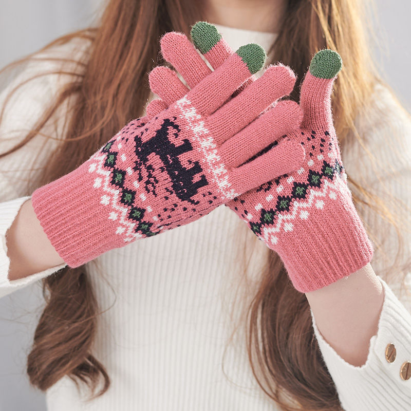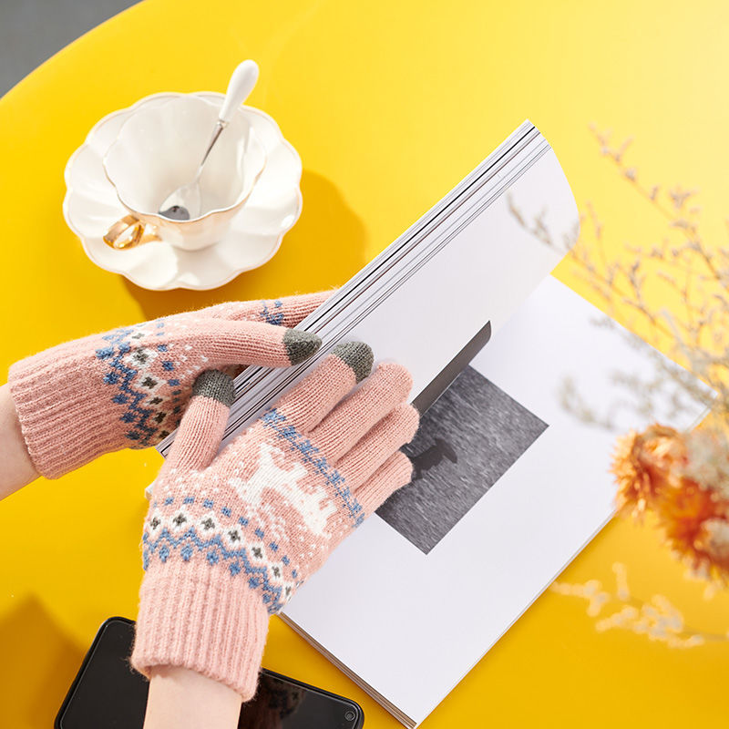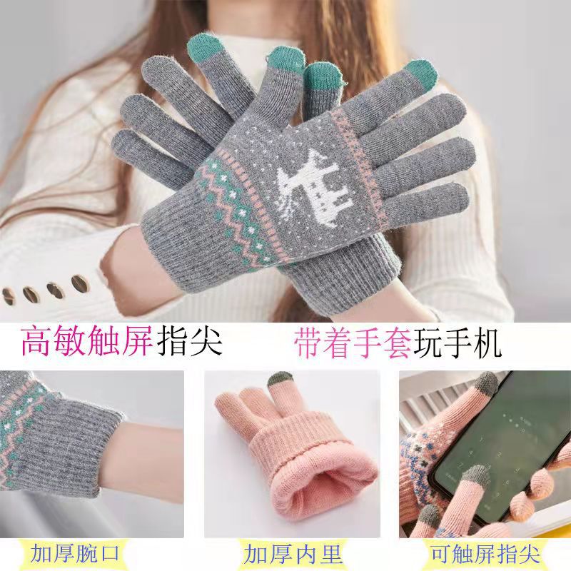 冬のベルベットは鹿の学生の保温毛糸手袋の女性がかわいい韓国版ファッション鹿タッチパネル手袋を厚くした