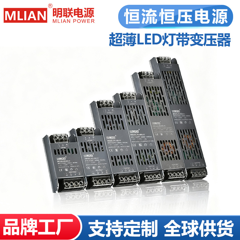 明联LED开关电源超薄静音12V24V灯箱电源低压灯带变压器60W-400W