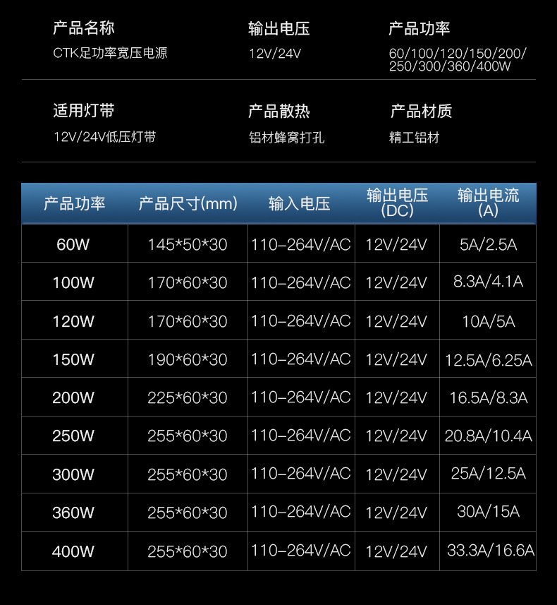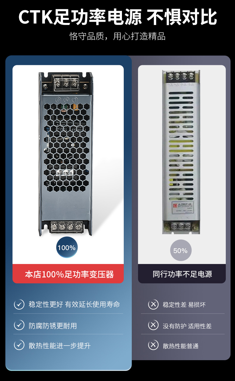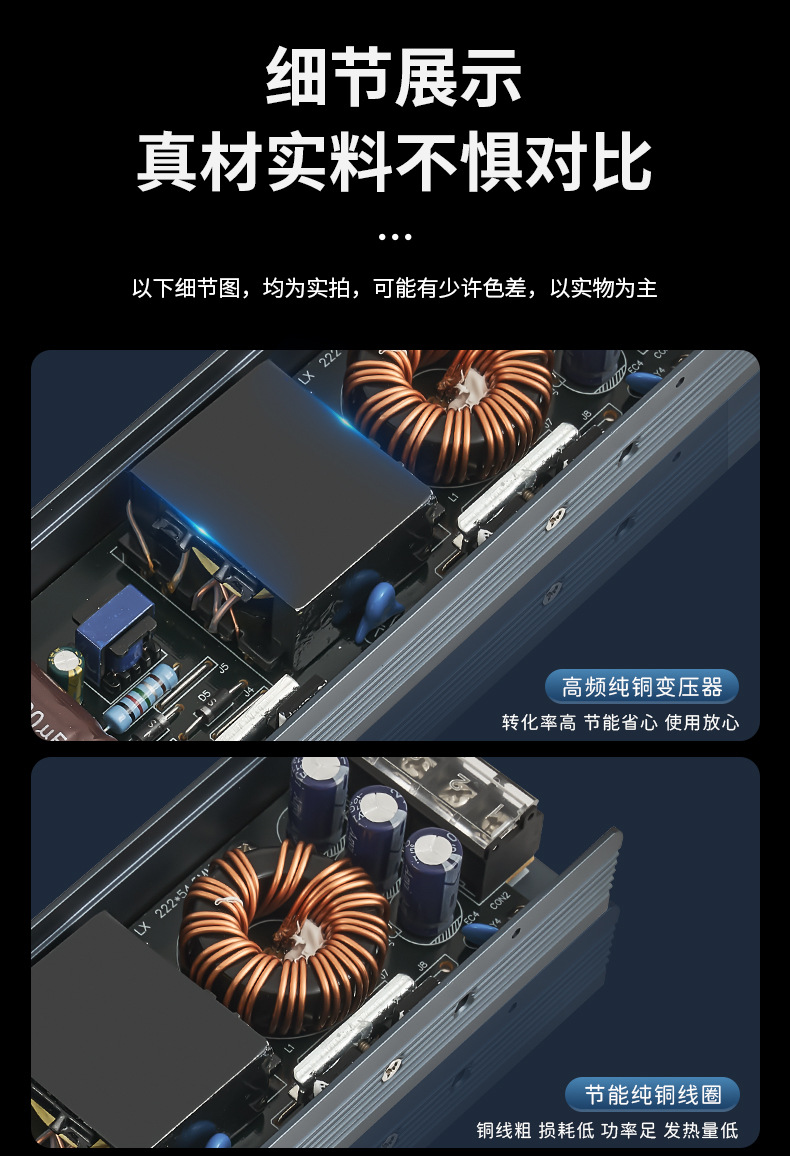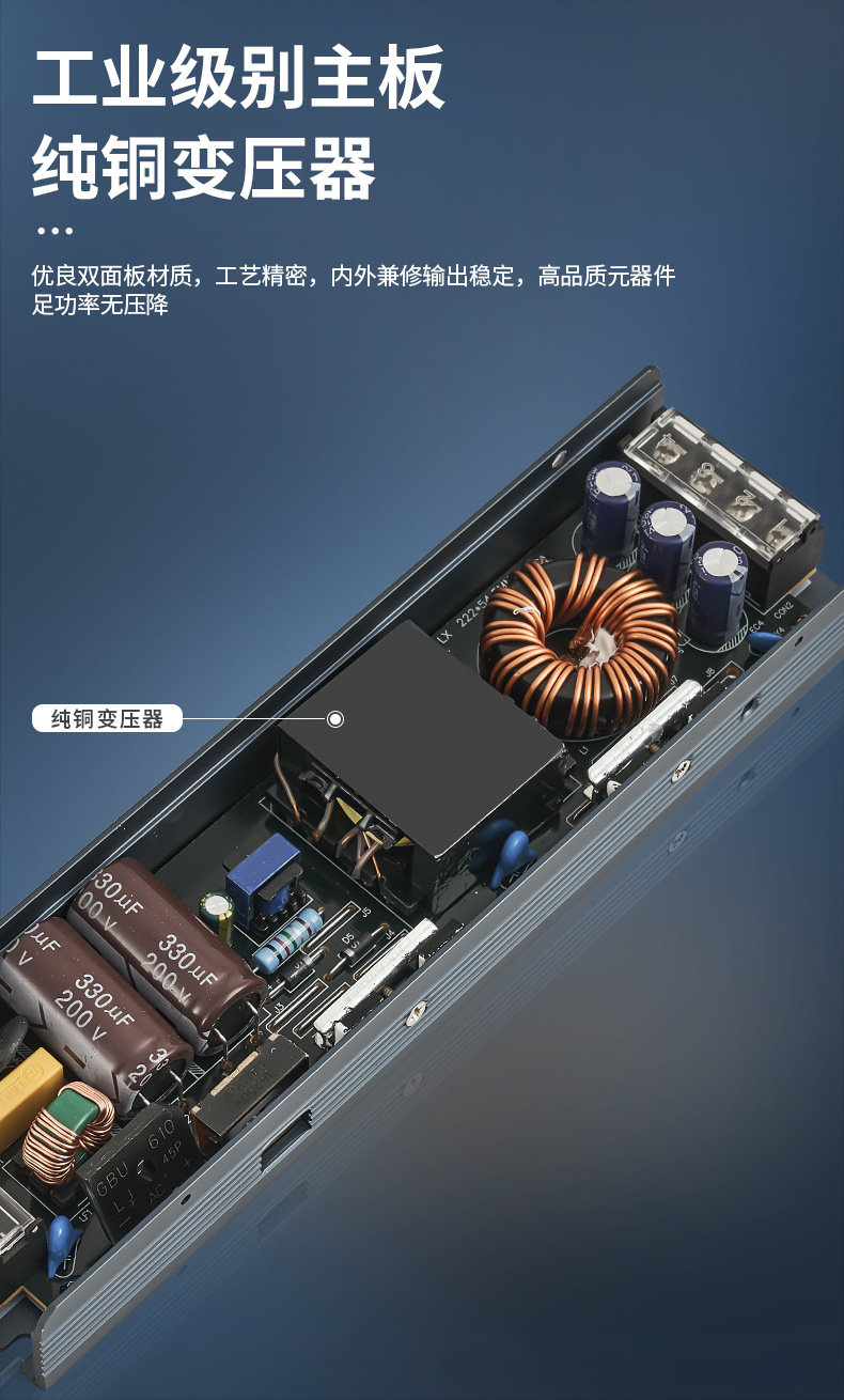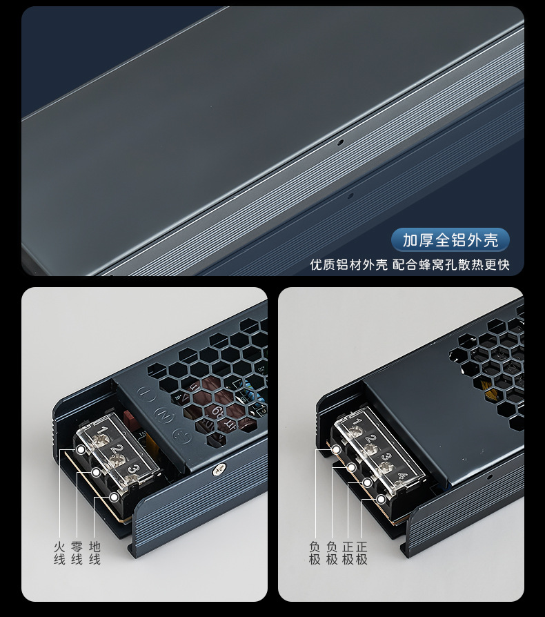 超薄黒金剛LEDスイッチ電源静音大電力室内灯変圧器12V24Vランプハウス電源付き
