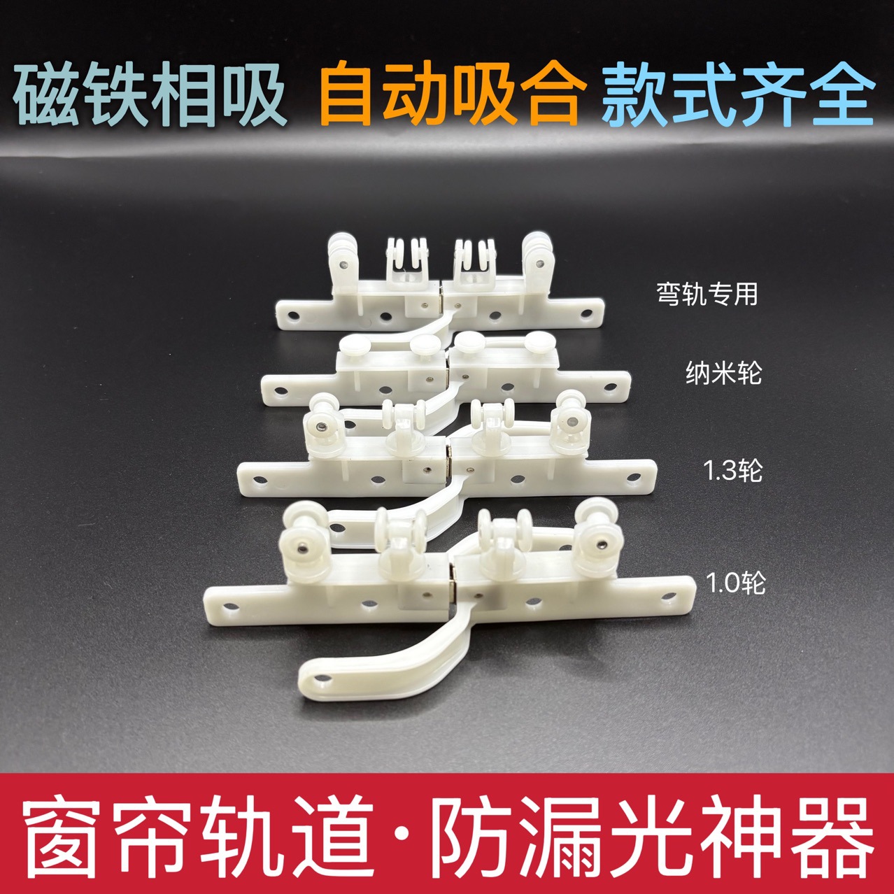 窗帘配件磁吸闭合器交叉磁碰滑轮直轨弯轨磁碰自动磁吸防漏光神器