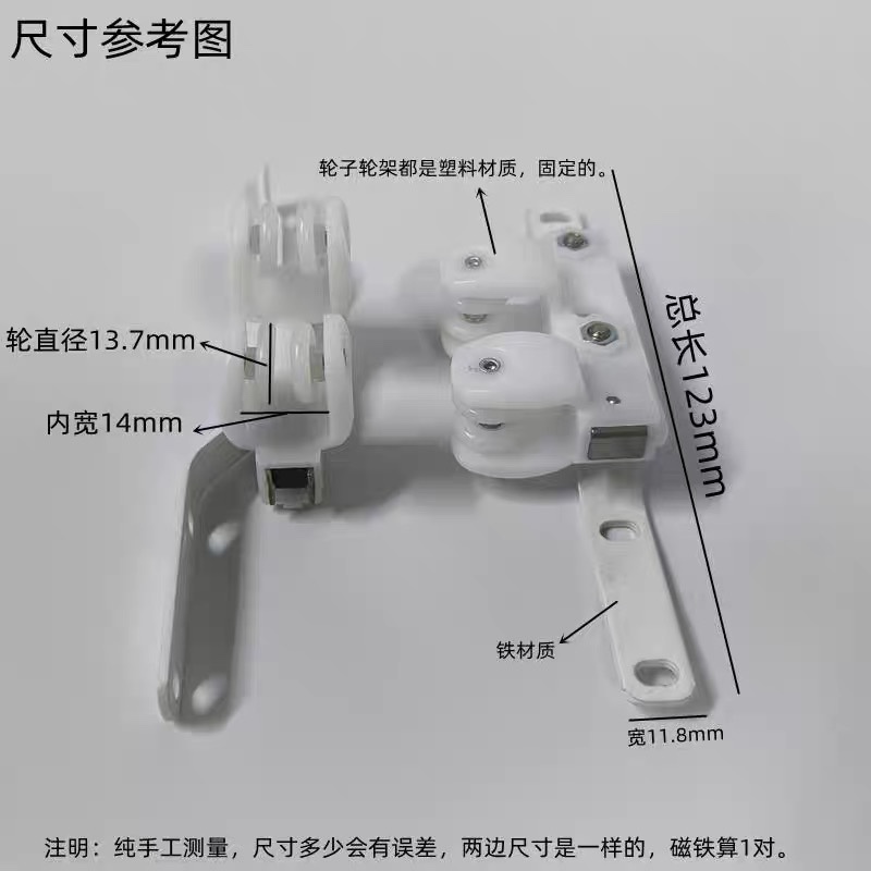 窗帘轨道配件交叉磁碰闭合防漏光滑轮方轨弯轨pom磁铁滑轮批发