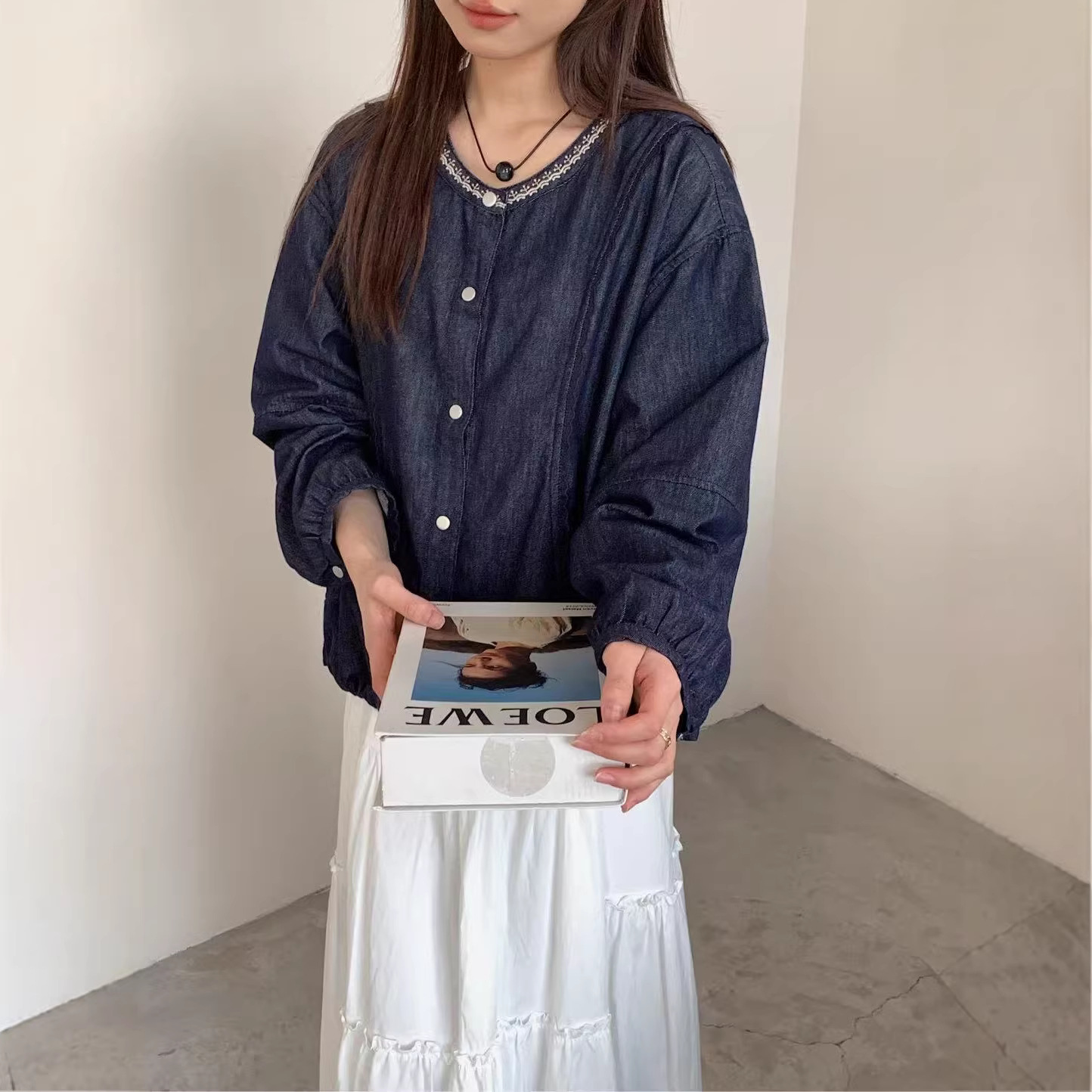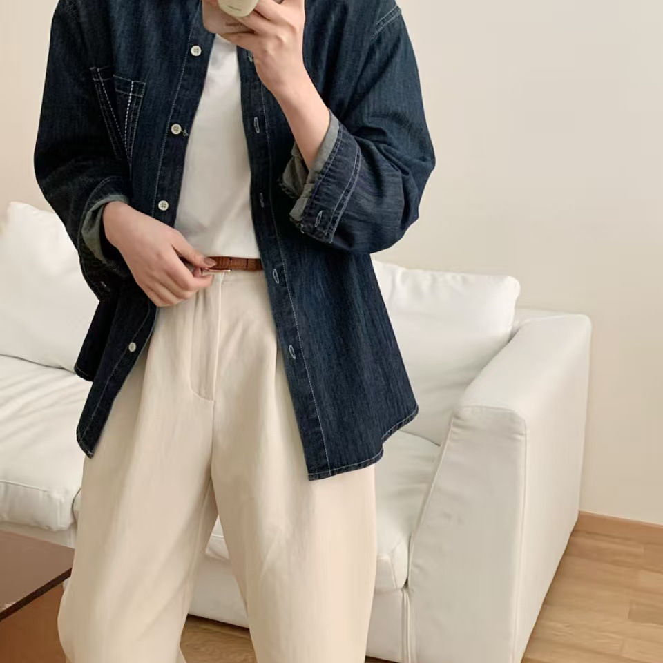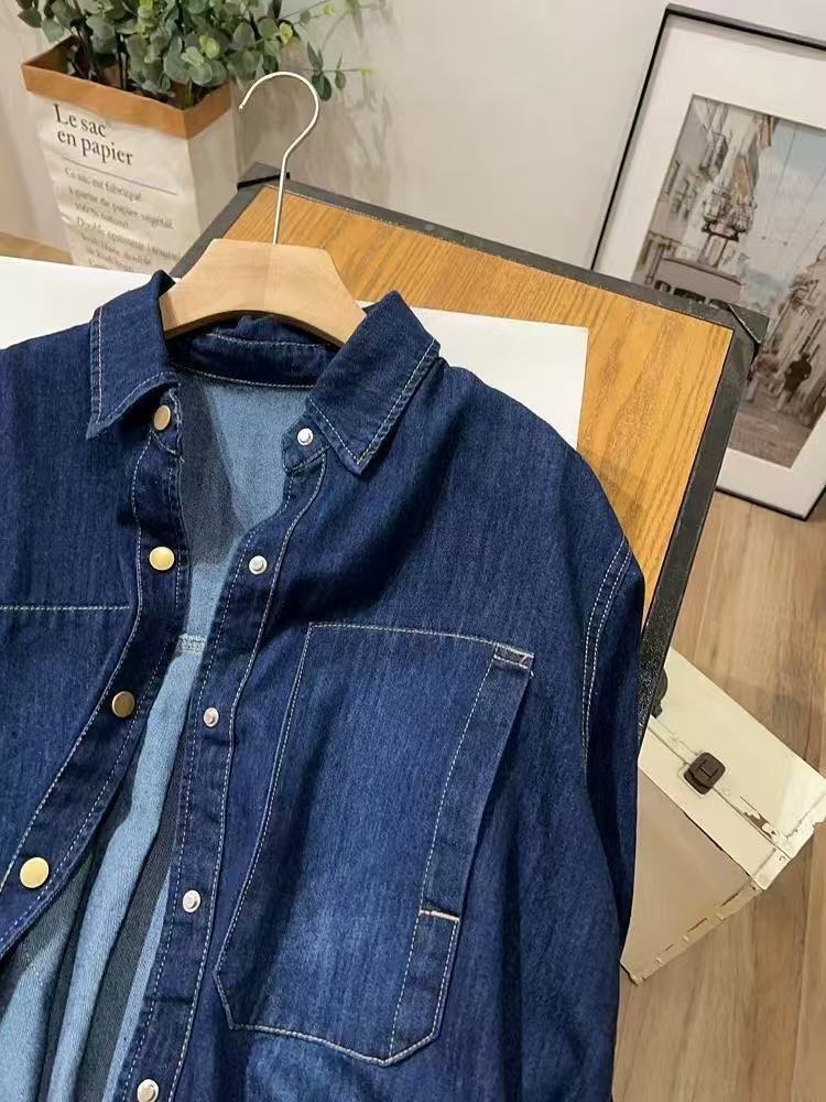 26年春款牛仔衬衫长袖宽松休闲韩版学院风新款衬衣慵懒风上衣衬衫