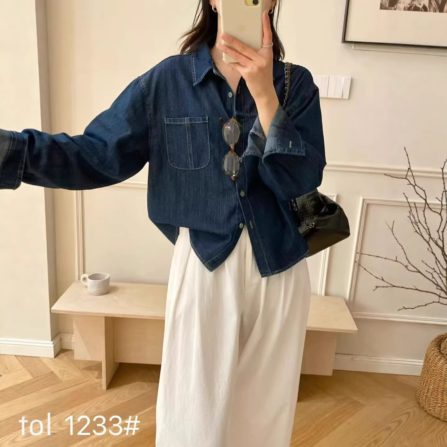 デニムのシャツ2025春の新型韓国の長袖の百合のコートの女性の小さい大衆のカジュアルでゆったりしているシャツの上着