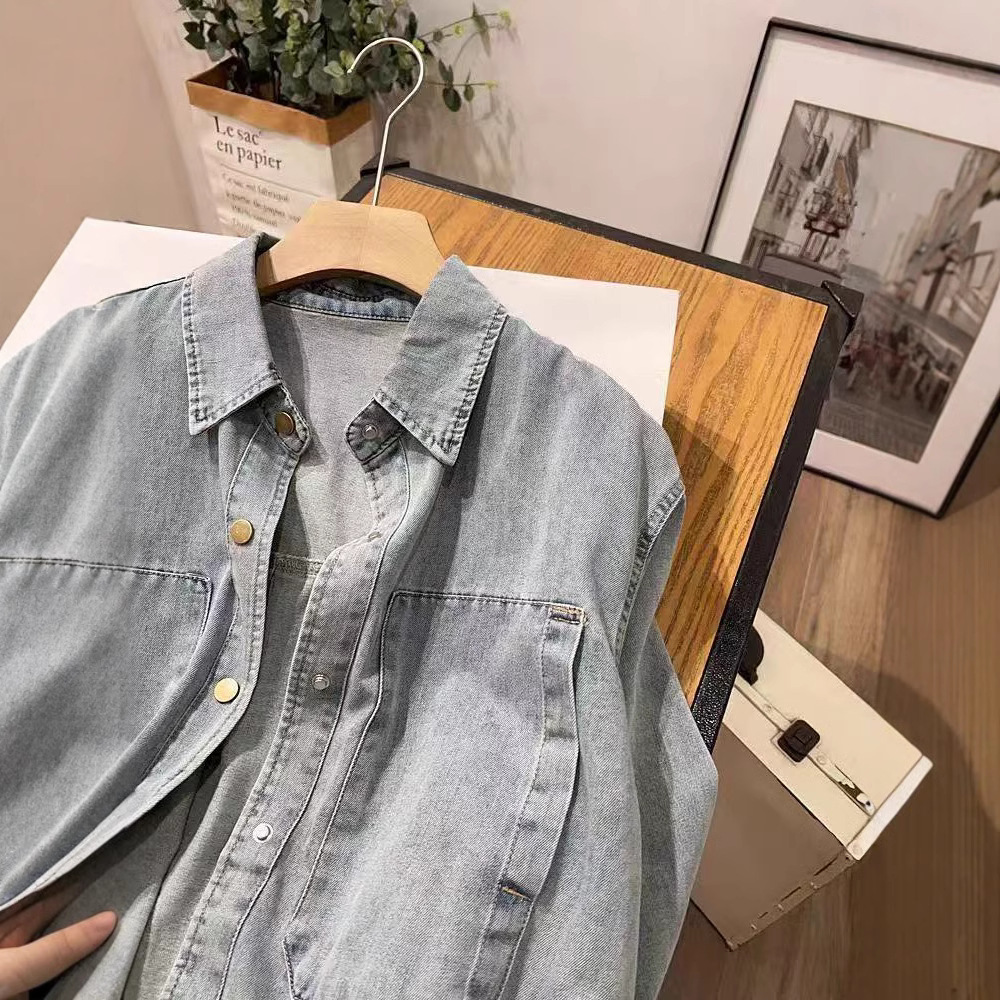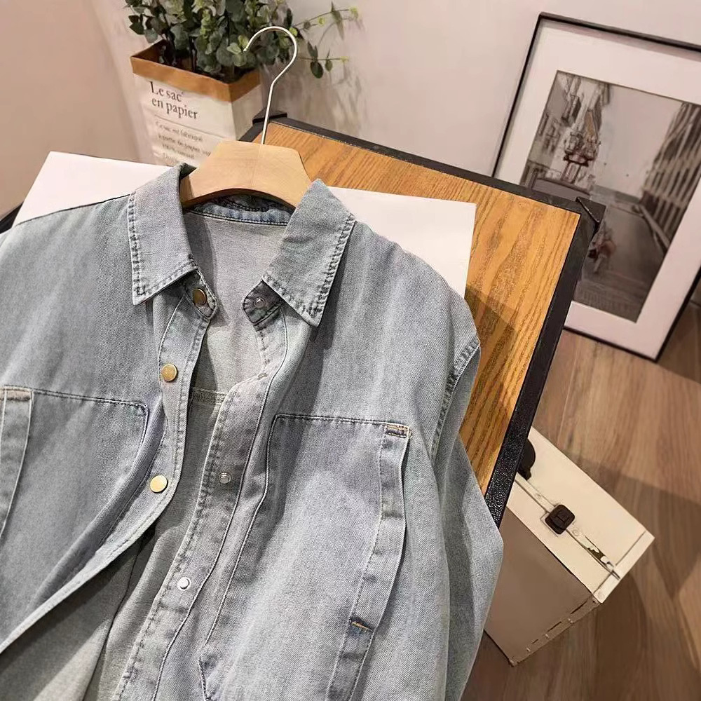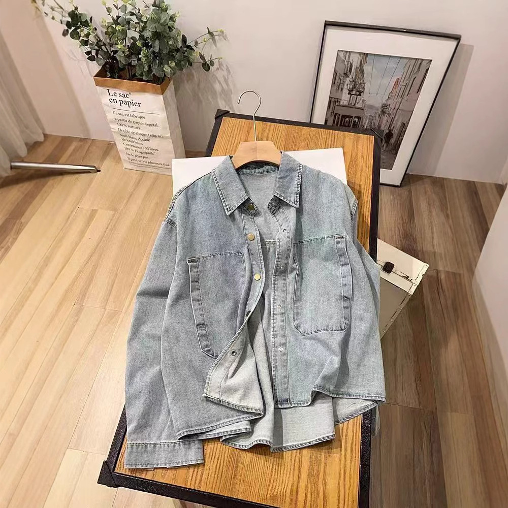 25年春款衬衫牛仔设计款韩版学院风新款衬衫外套宽松休闲上衣新款