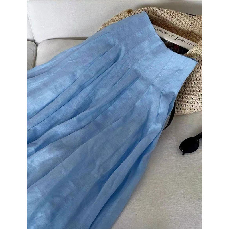 巨巨巨推荐!2026小众设计师款鱼骨腰封压褶仿天丝亚麻苎麻半身裙