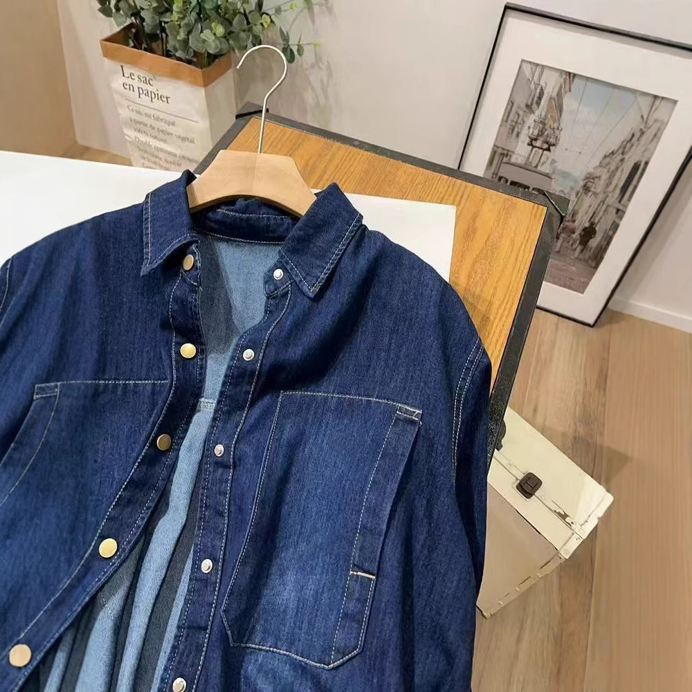 ブルーデニムシャツ レディース 2026 春秋 レイヤードデザイン ニッチ レトロ 香港風 ゆったり 長袖 おしゃれトップス
