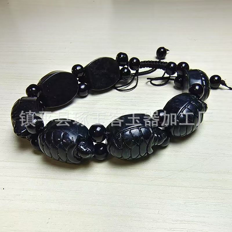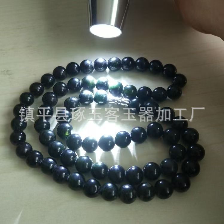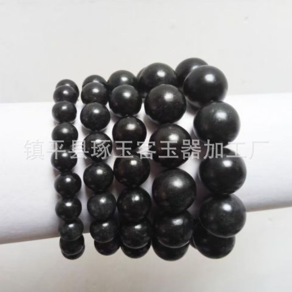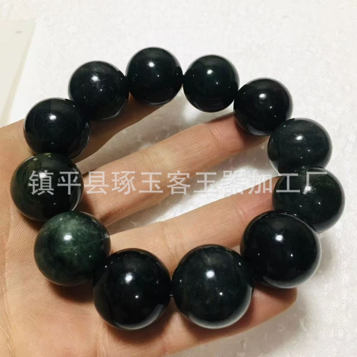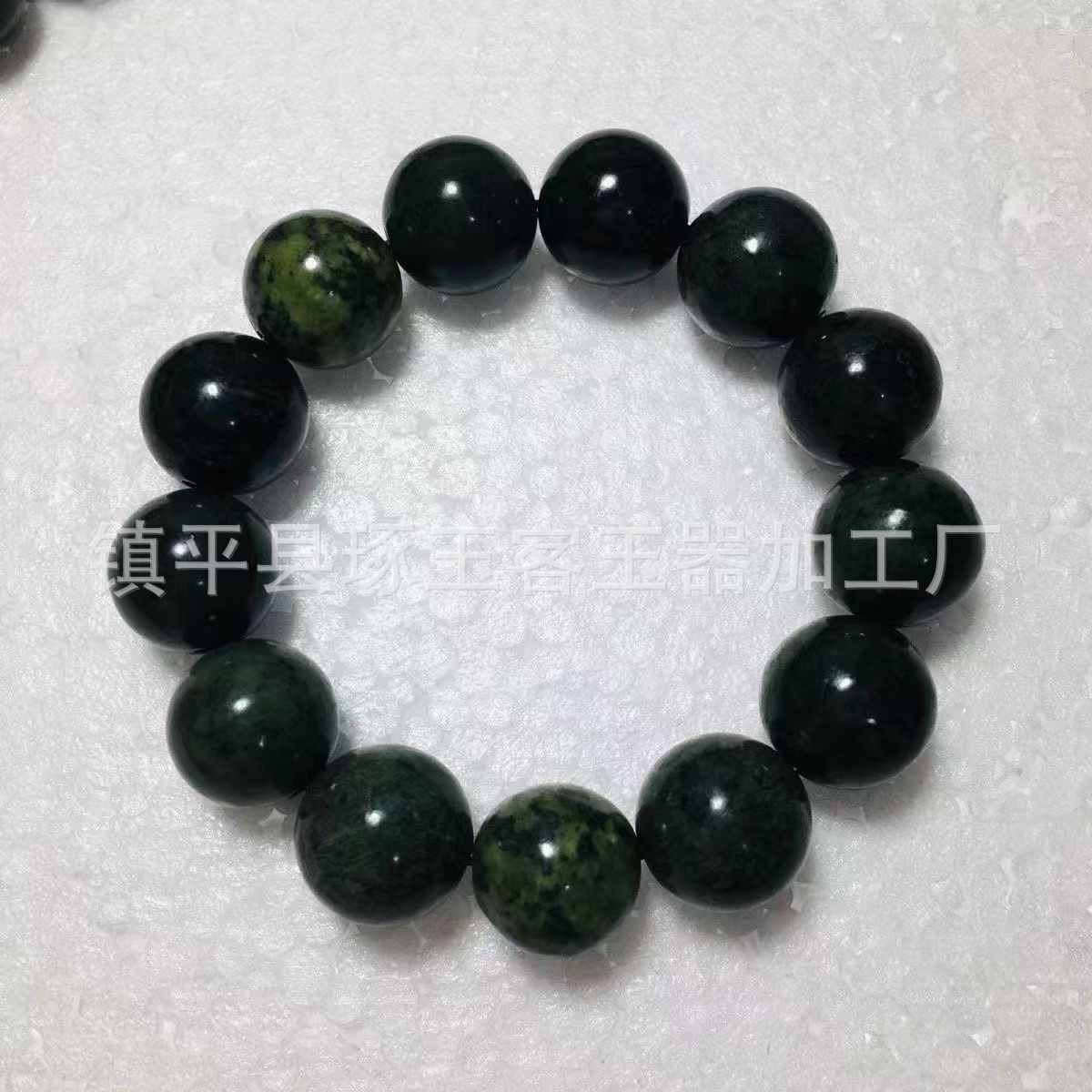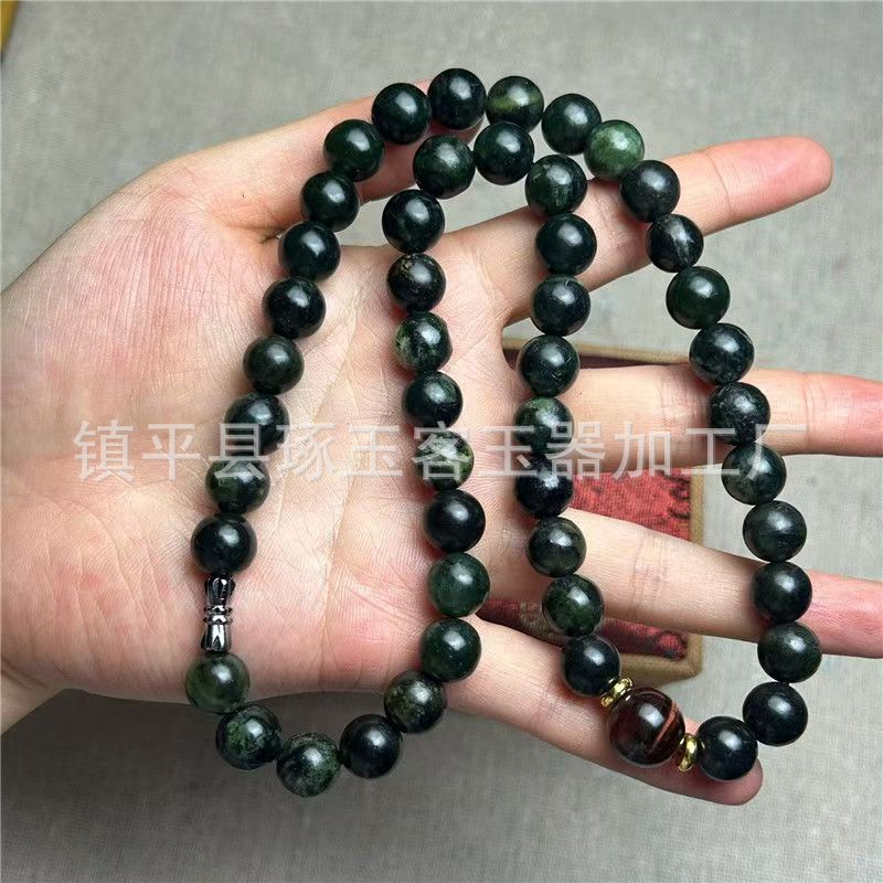 【产品名称】新疆天然墨绿玉圆珠手链
