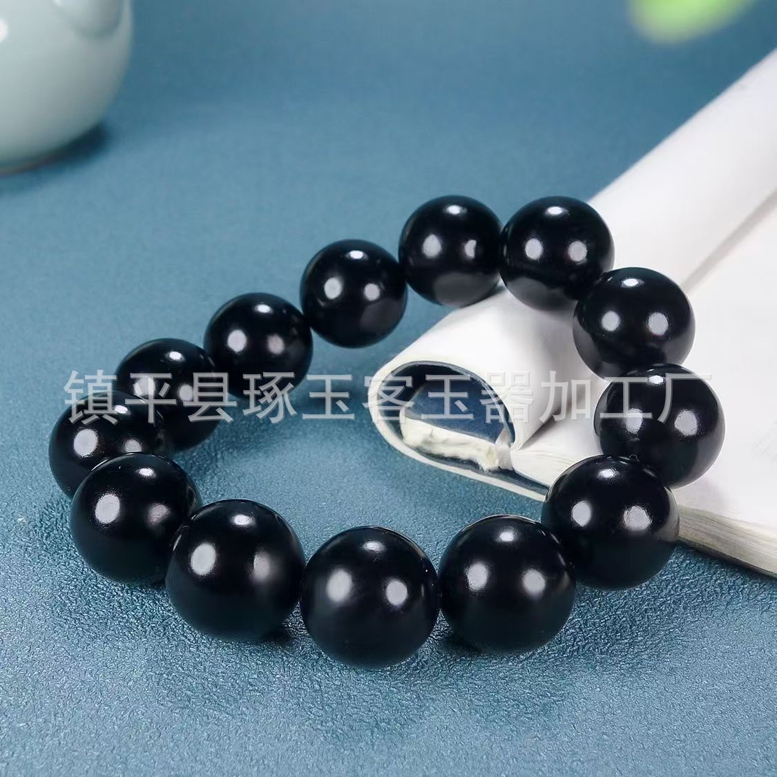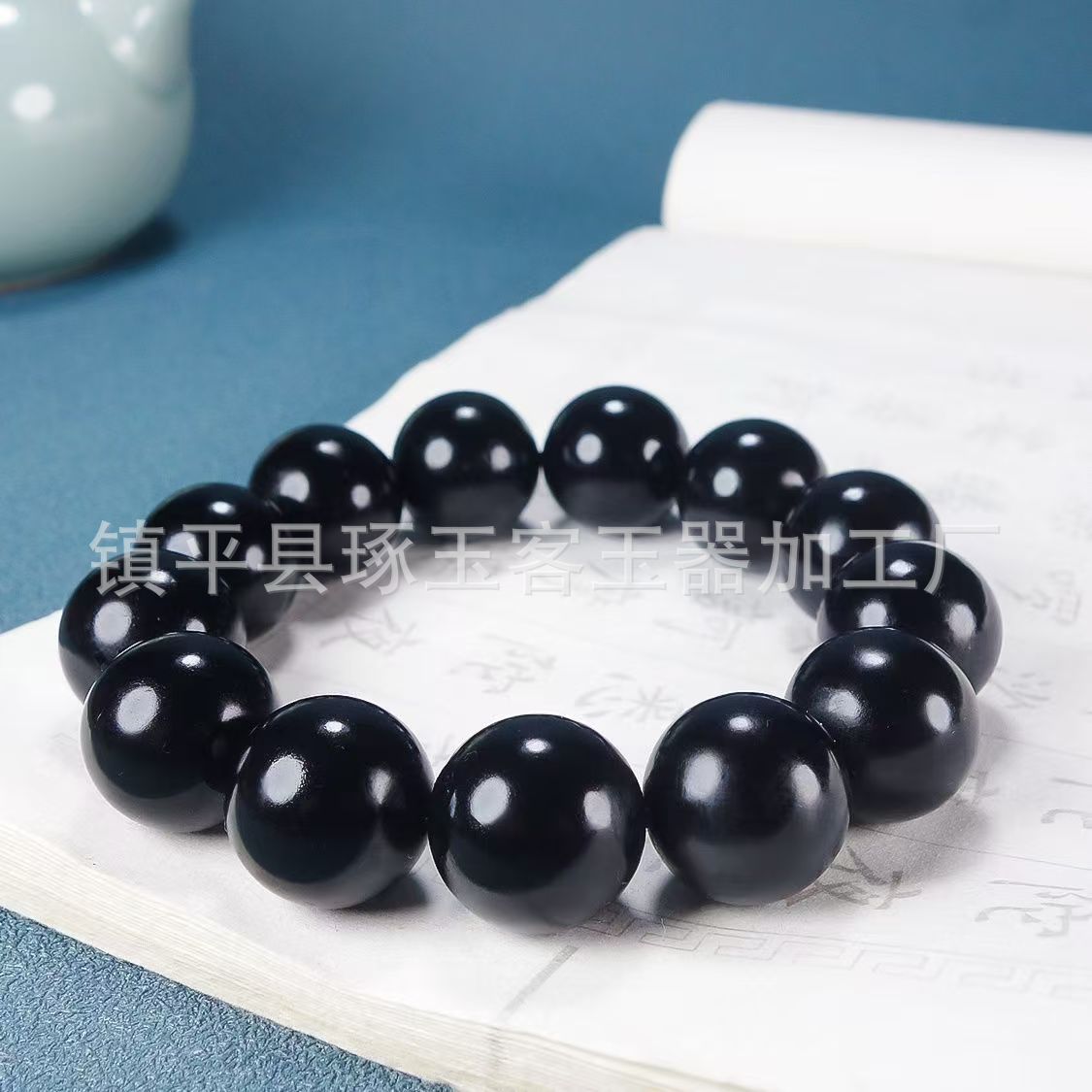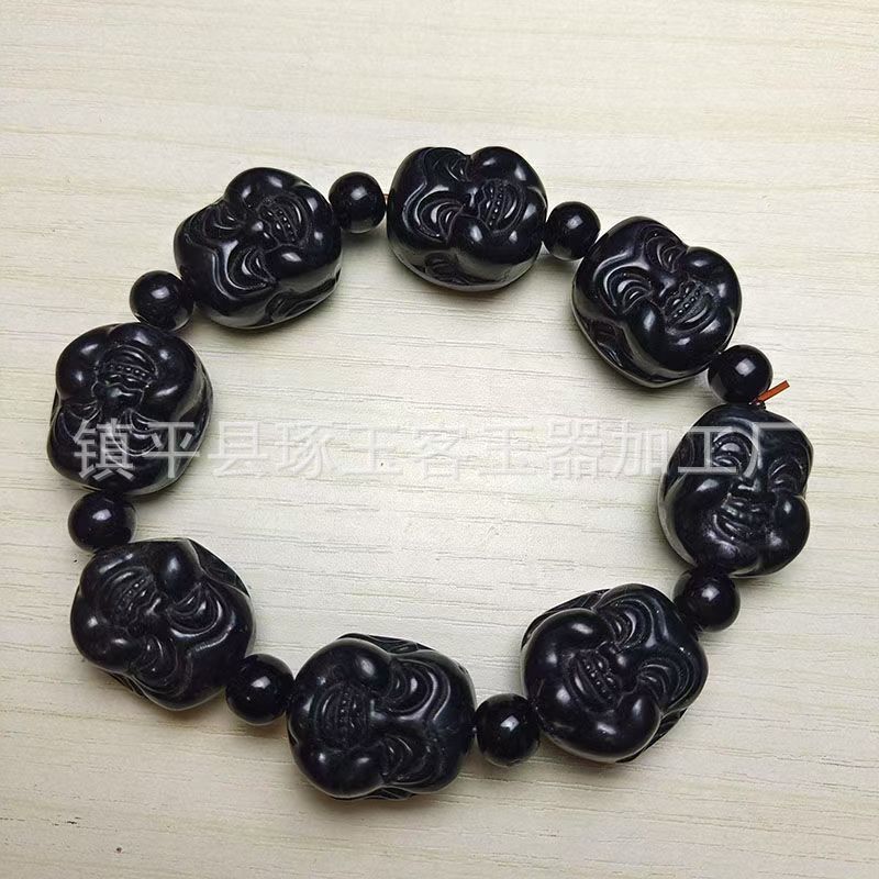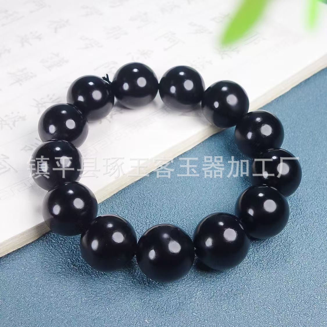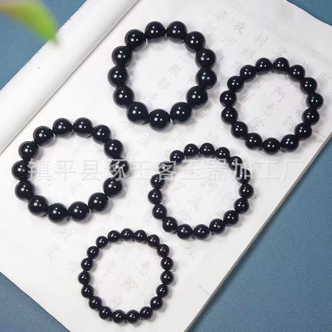 【产品名称】新疆天然墨绿玉圆珠手链