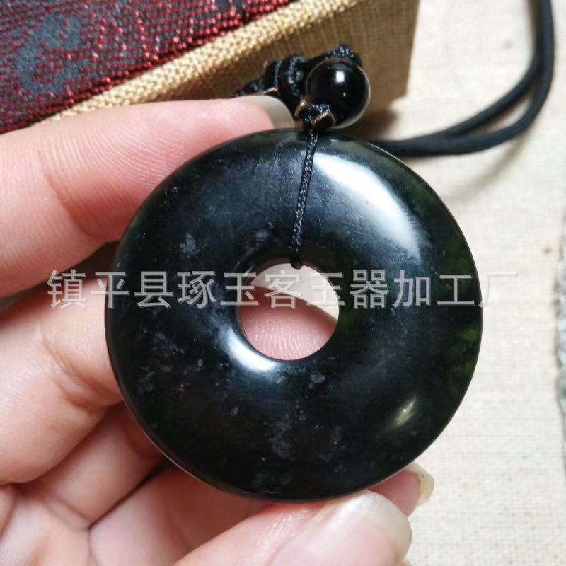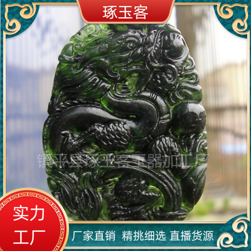 【产品材质】天然墨绿玉